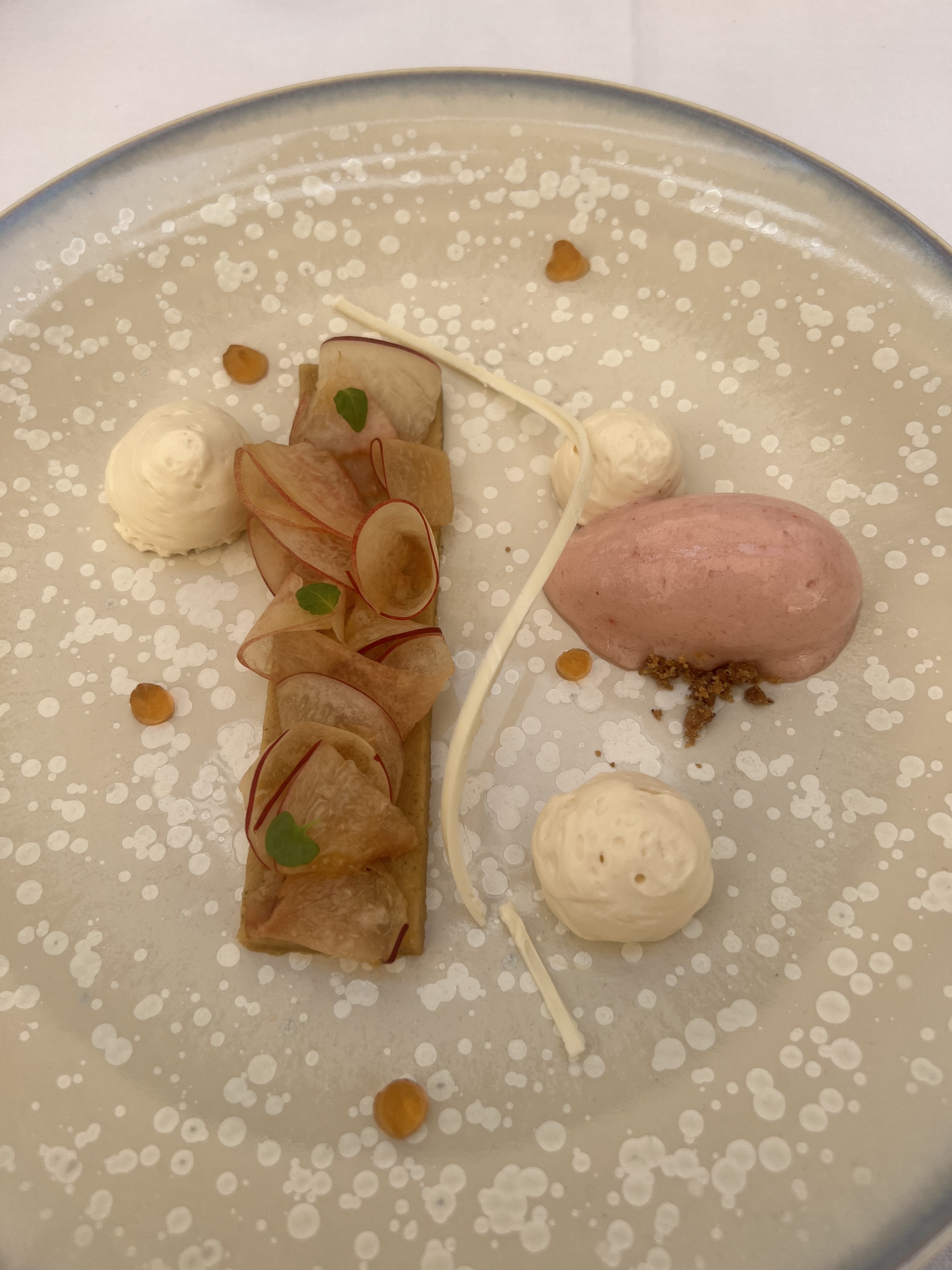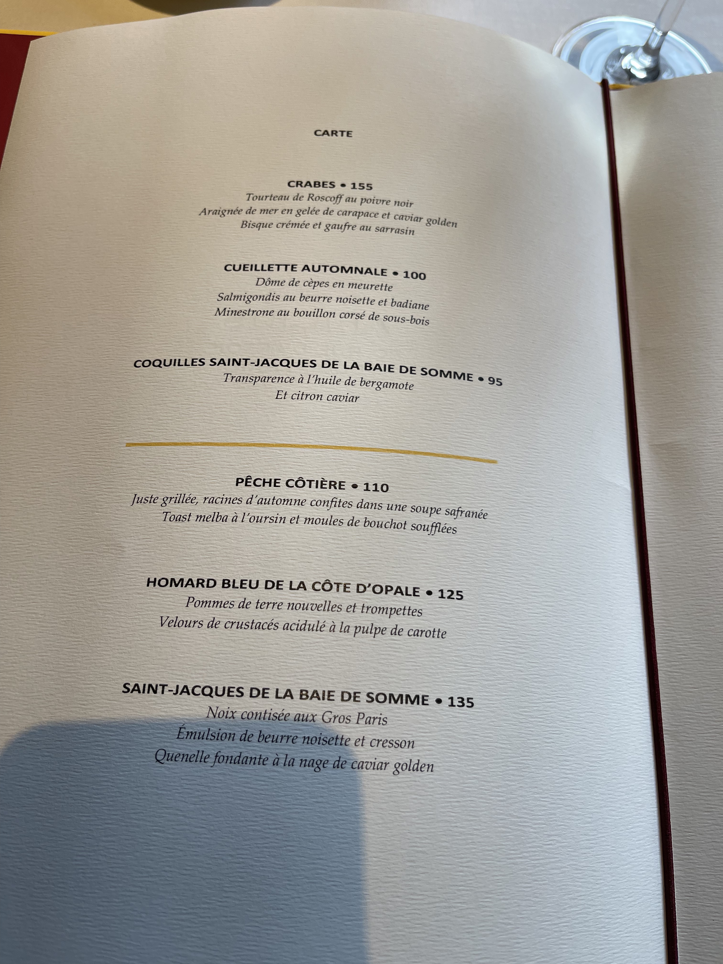 Très belle maison, cuisine au niveau de ses étoiles, belles assiettes Carte des vins dématérialisée, Covid19 oblige, à des prix Parisiens mais de jolis flacons à des prix très raisonnables