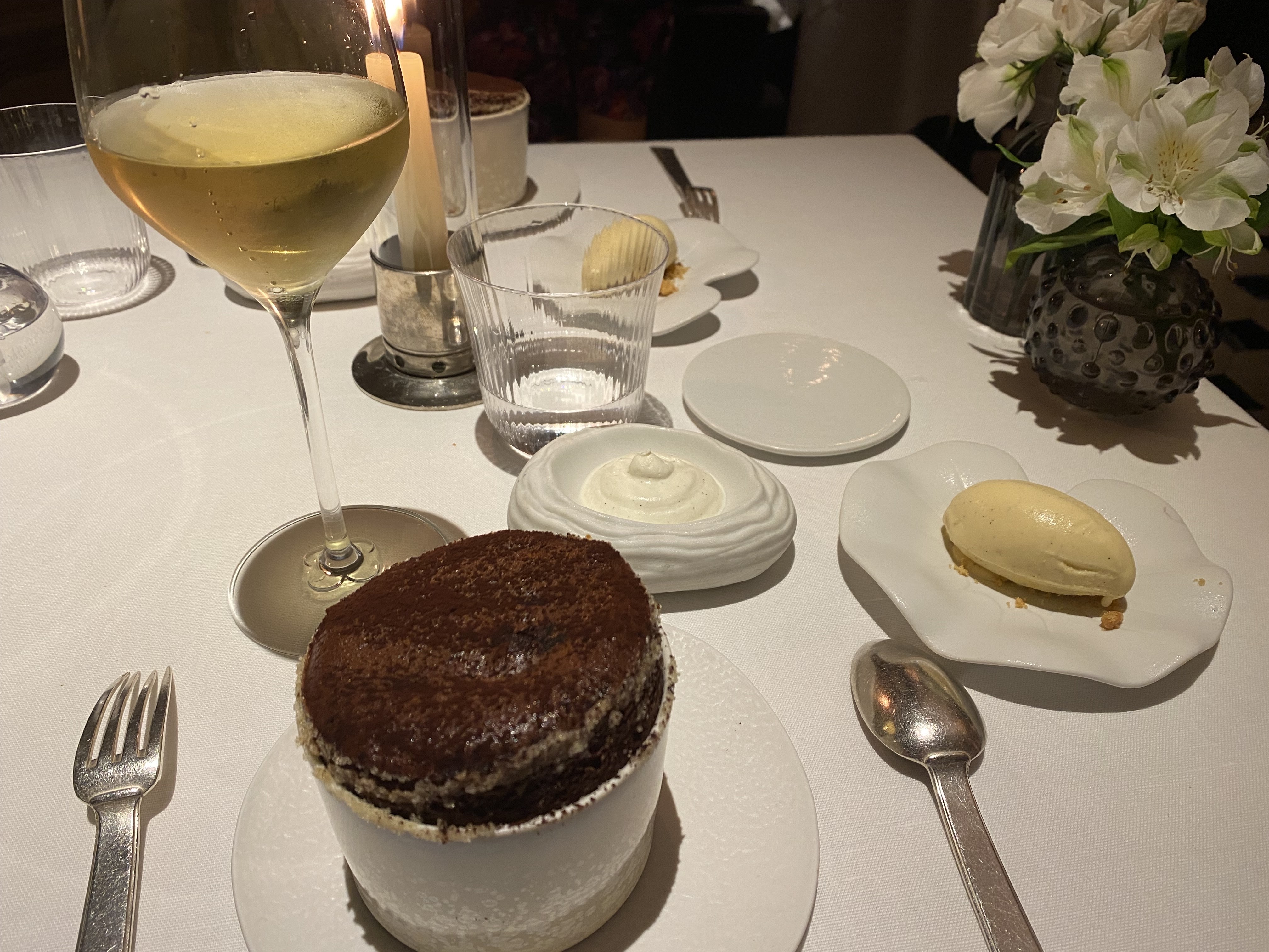 Un cadre des plus somptueux Un service absolument irréprochable Sommelier magnifique Un repas en 4 temps délicieux Un ravissement