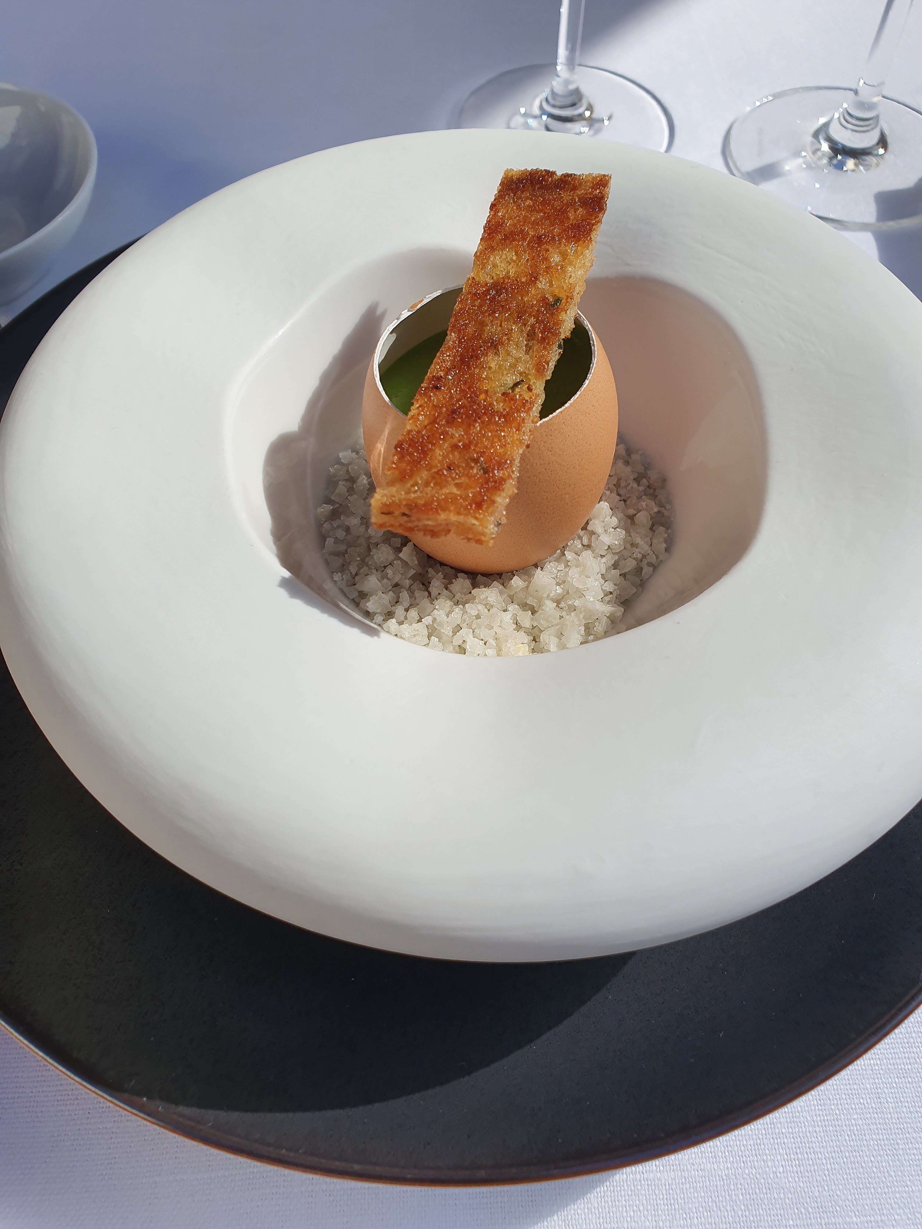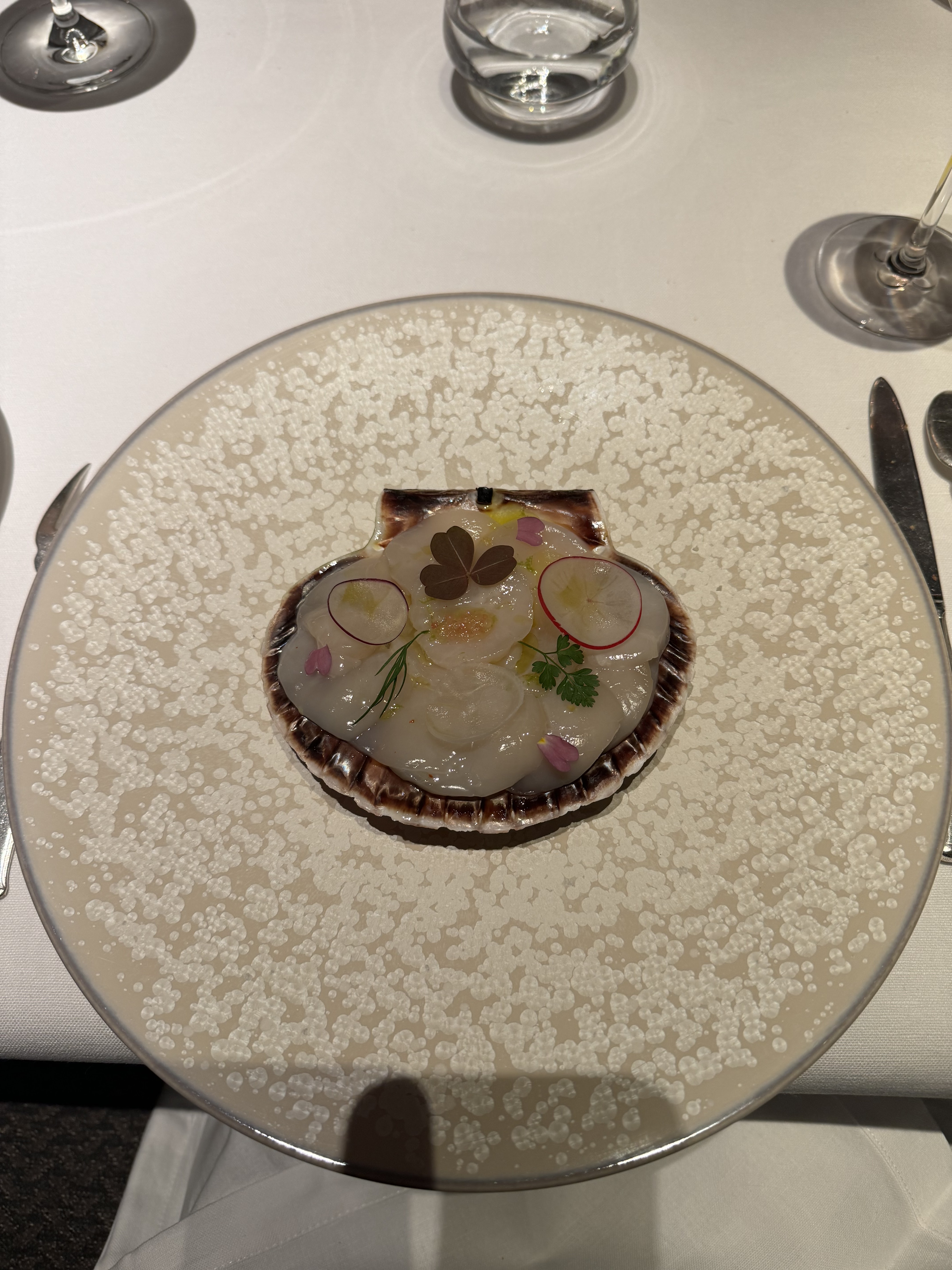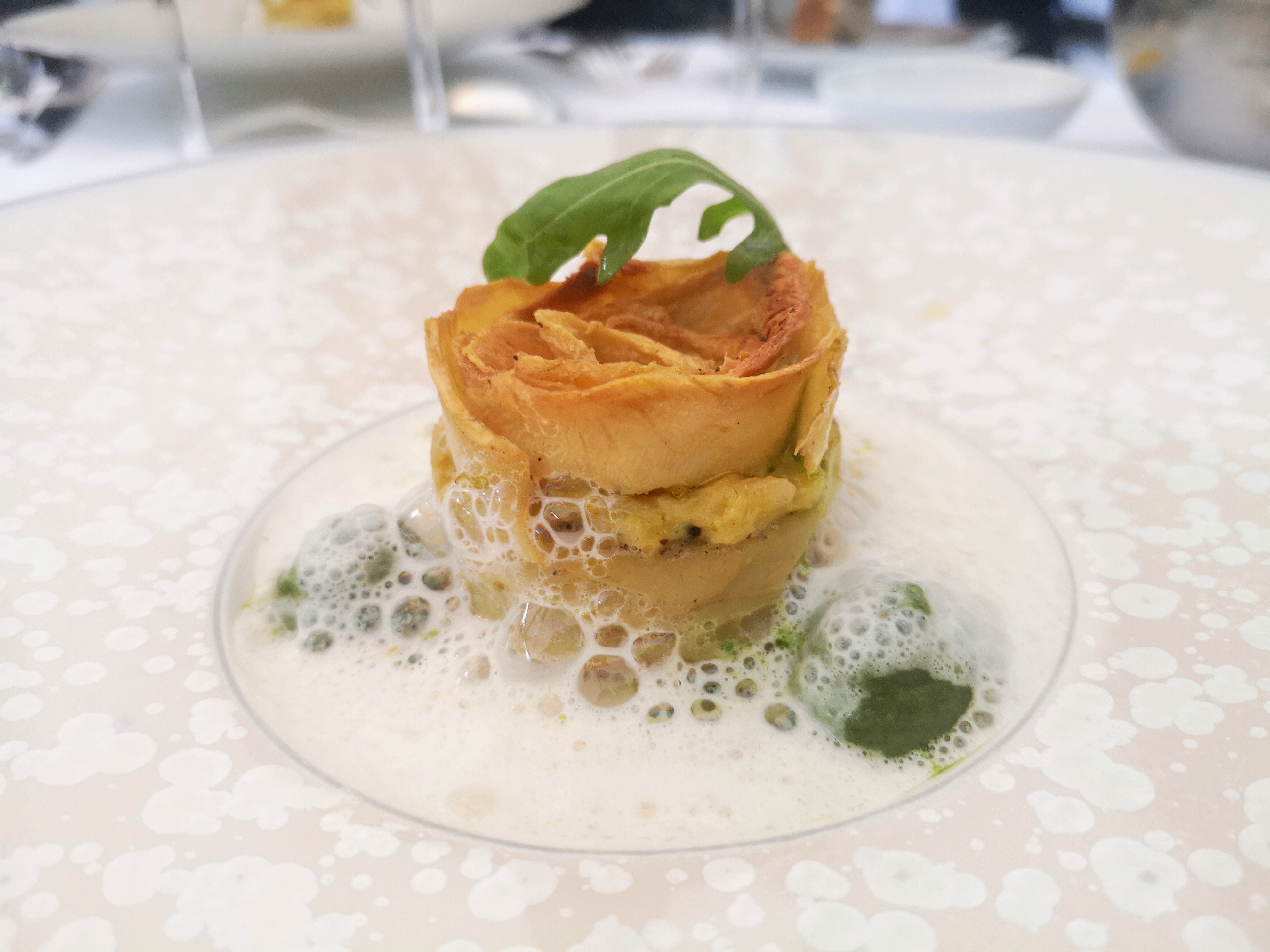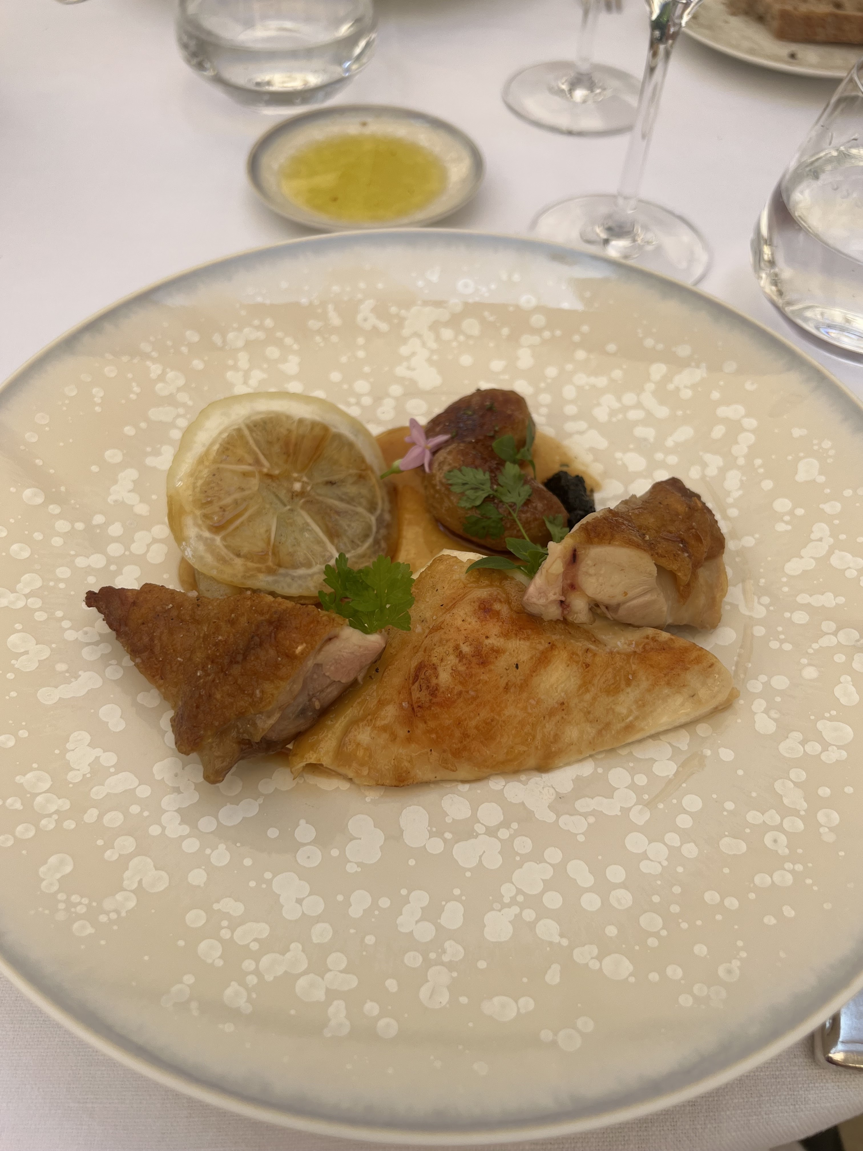 Dans un cadre magnifique, j'ai porté mon choix sur le menu en 4 services du déjeuner. Les plats sont bien travaillés et les goûts au RDV. Je salue le personnel de service très professionnel et agréable. Enfin, une dernière mention au maître sommelier avec lequel nous avons bien échangé et partagé sa passion