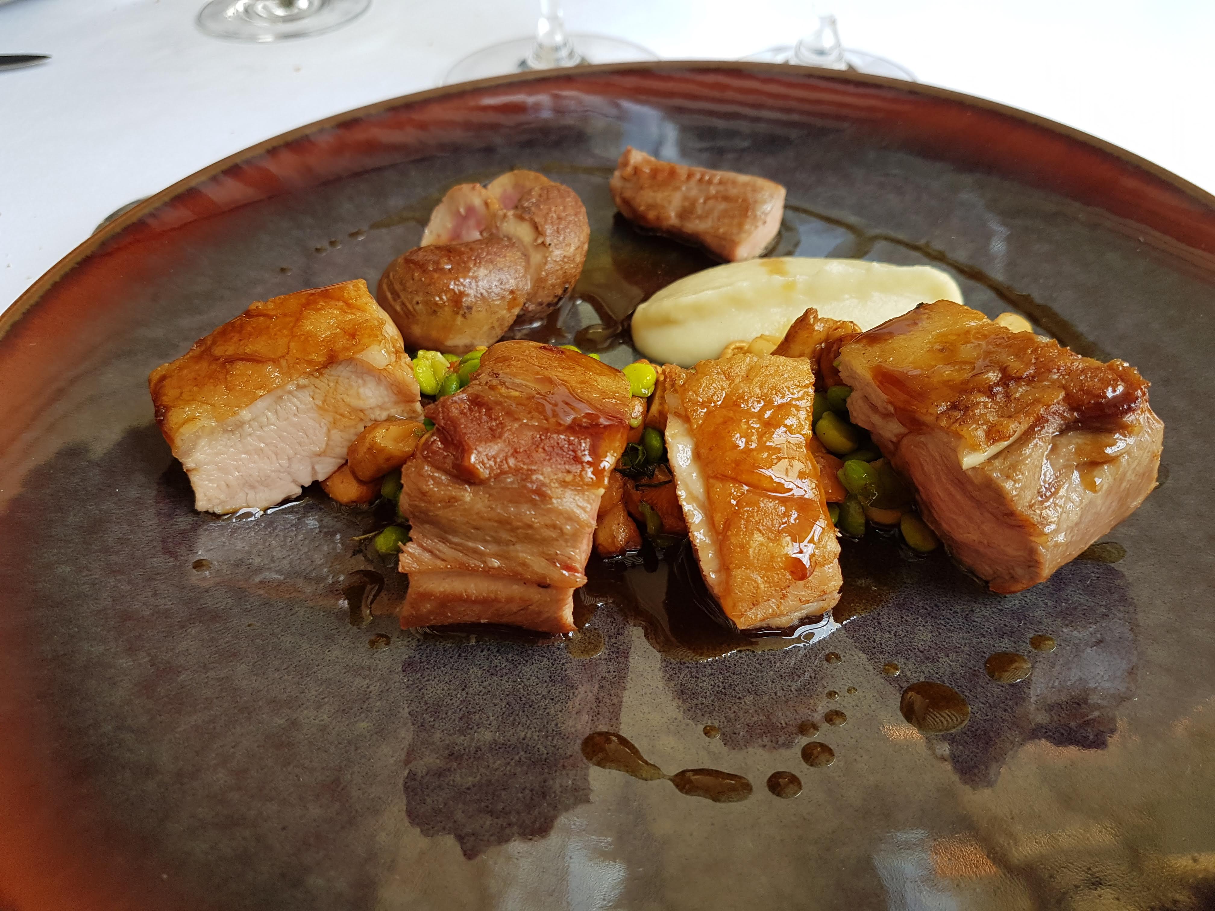 Déjeuner pris dans le jardin. Cuisine fine et raffinée, juste cuisson sur tous les plats. Belle carte des vins.