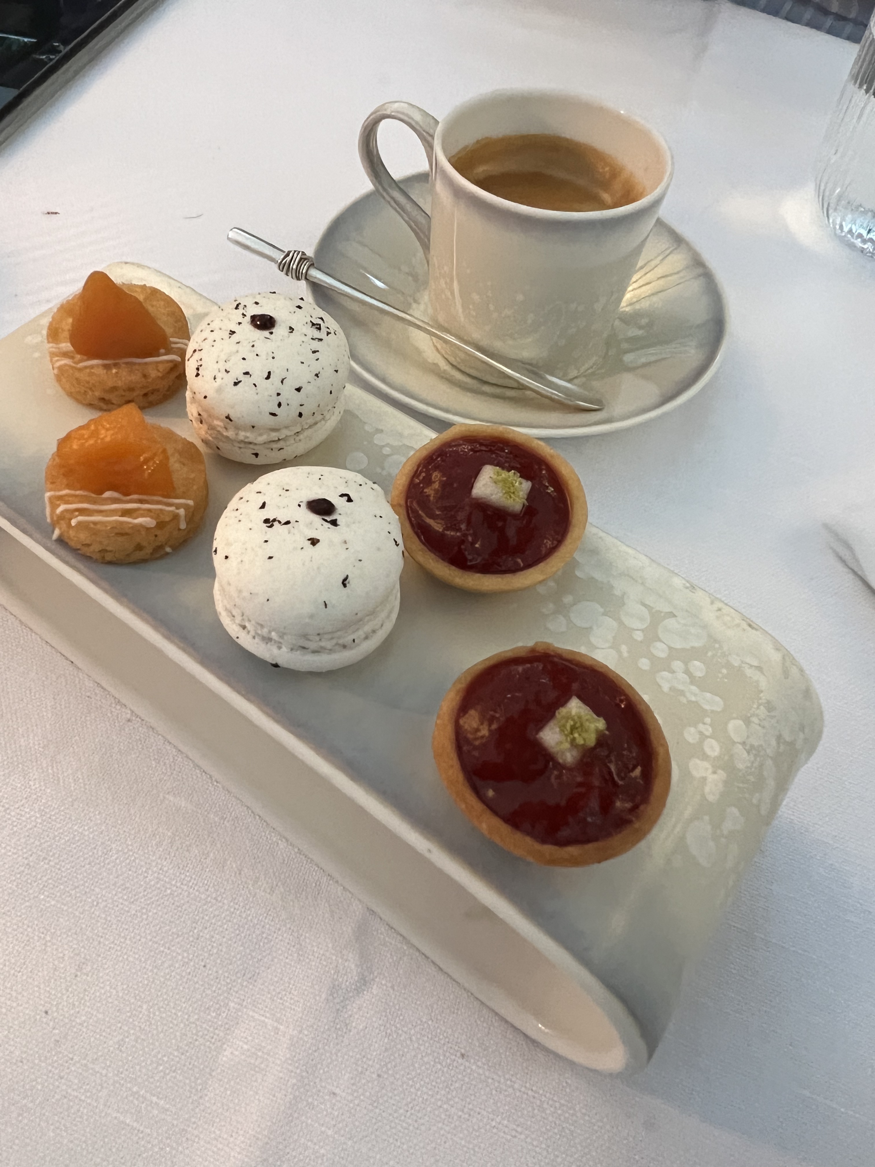 Expérience décevante. Belles assiettes, l'entrée, le plat et le dessert sont bons et le cadre est agréable. En revanche le service est décevant. Pas d'explications sur les amuses bouche, les serveurs se sont trompés en servant l'entrée, le plat et le dessert. Notre bouteille d'eau est restée sur une table à côté au soleil, donc l'eau servie était tiède en fin de repas. Les serveurs nous ont redemandé si nous souhaitions des cafés alors que nous avions déjà commandé. Alors que j'ai réglé l'addition, une serveuse propose à mes convives s'ils souhaitent un autre café. Enfin, aucun manager n'était visible et ne s'est présenté. Nous sommes partis et personne ne nous a salué. Ce n'est malheureusement pas à la hauteur de l'addition.