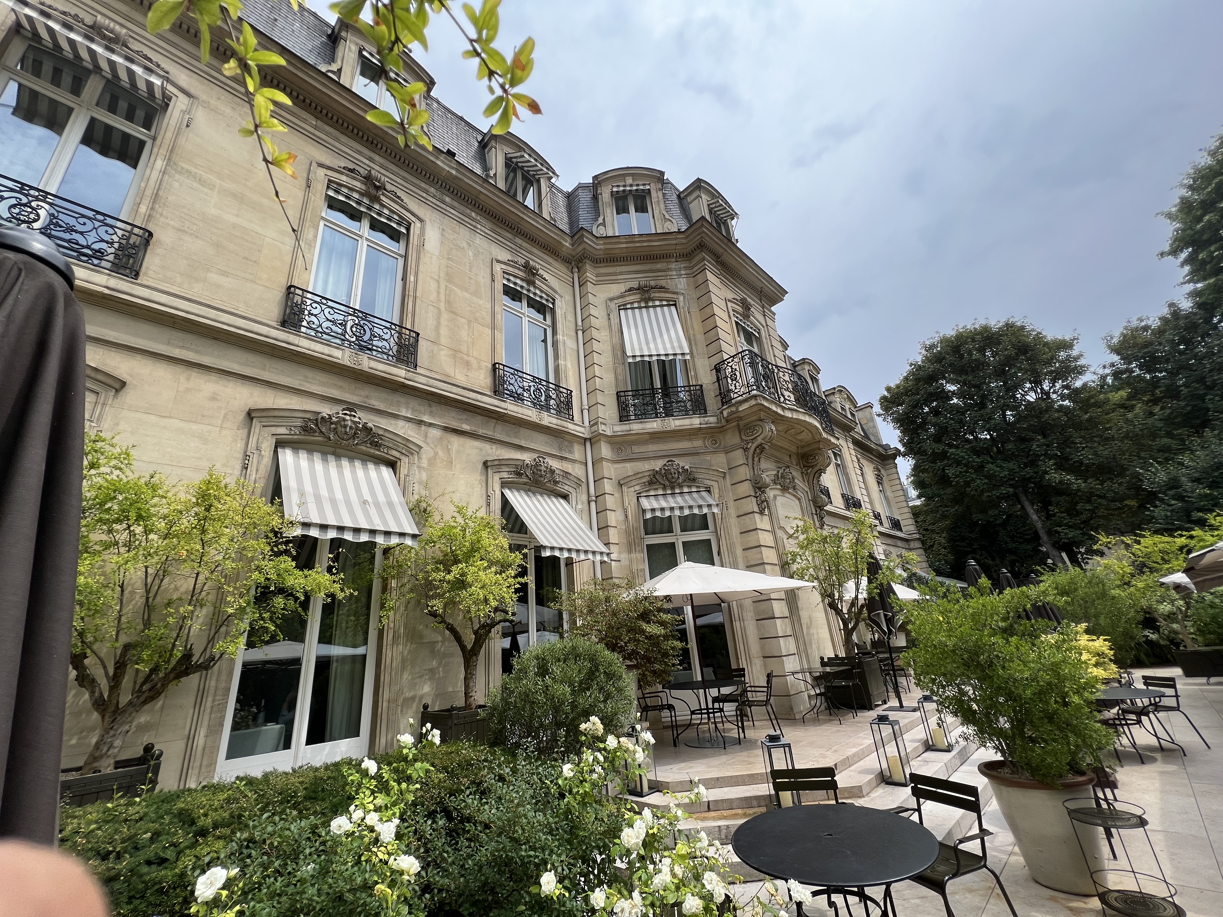 Beau jardin hôtel particulier superbe, une belle surprise à 2 pas des Champs Elysées. Cuisine en totale adéquation. Il s agissait de l ancienne direction . Hommage à JPierre Vigato