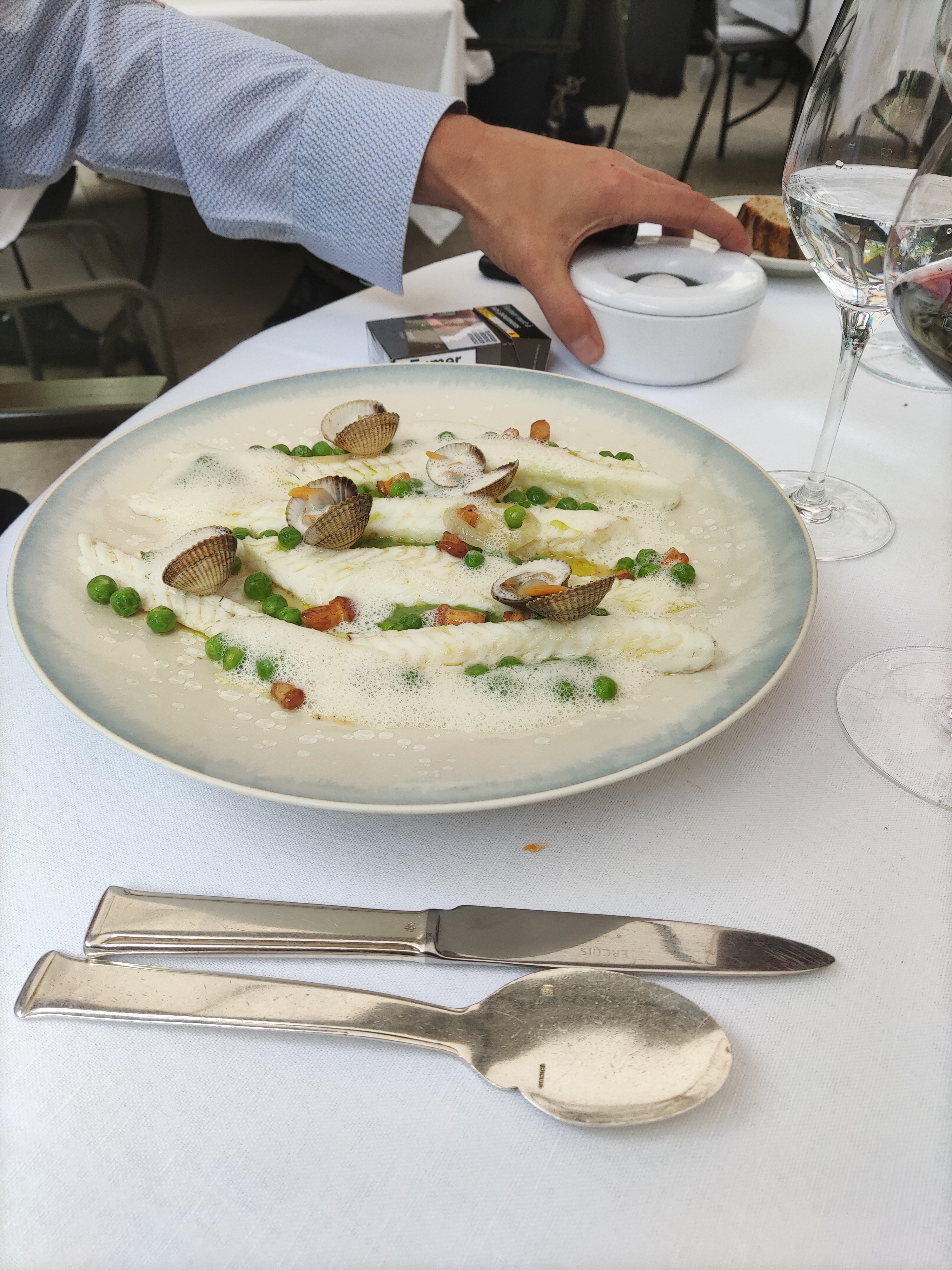 Lieu et jardin très beau. Service expéditif et médiocre pour un etoilé Michelin. Une honte même...les plats enchaînés rapidement . Les plats débarrassés avant que les convives de la table finissent. Une impression de déranger a chaque demande... Bref joli lieu mais cuisine bof et service nul. A eviter.