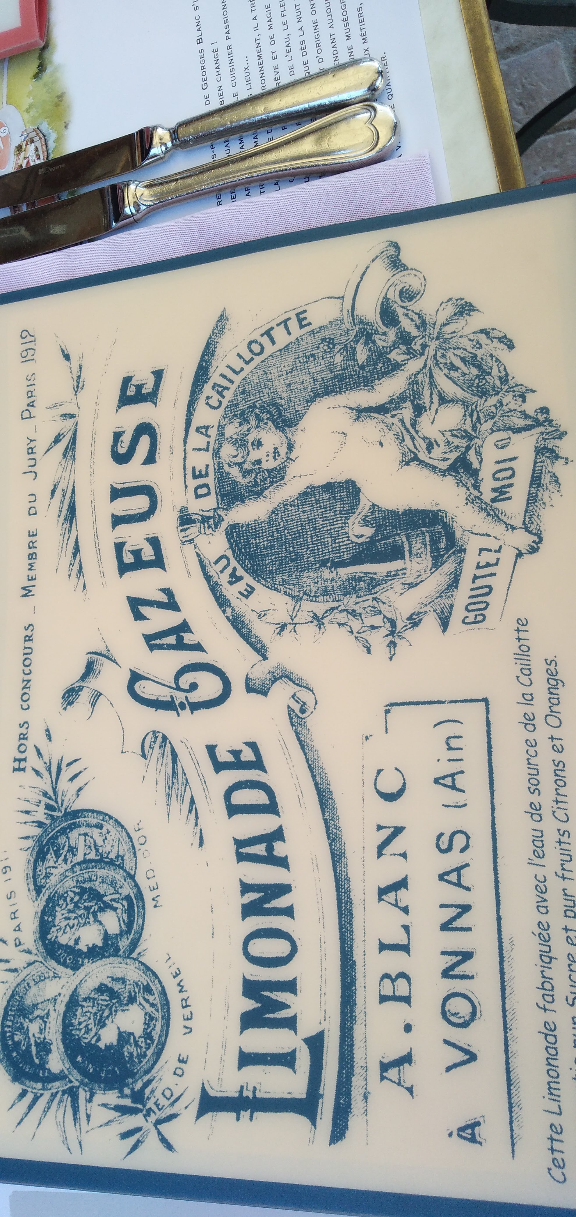 Un dîner dans l'auberge historique de la Mère Blanc, à Vonnas ? Un moment hors du temps, des souvenirs qui vous entourent, des mets parfaits qui sont le fruit d'un travail soigneux et le plaisir du salut de Mr Blanc en personne. Mais un décor alambiqué, qui peut surprendre.