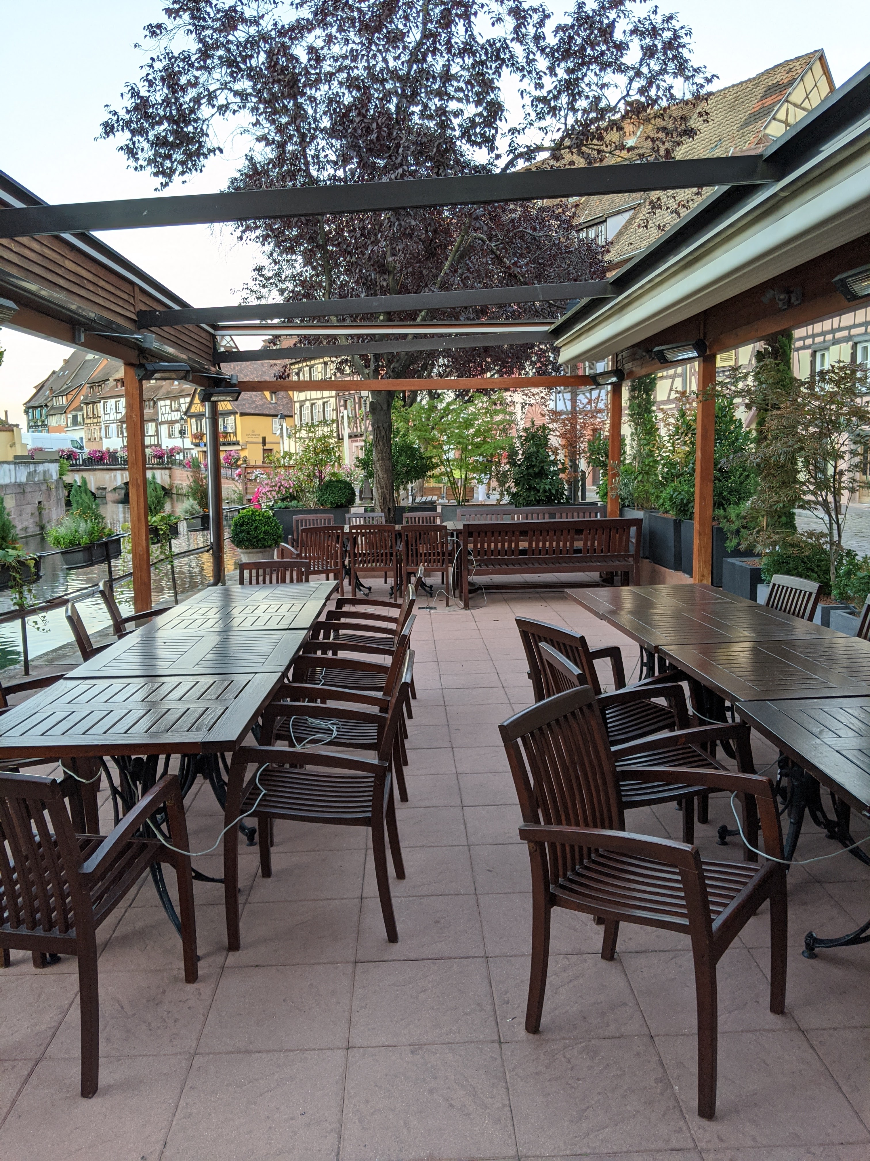 Le restaurant est admirablement situé au cœur du vieux Colmar, dans la petite Venise au bord de l'eau. En saison, la terrasse est délicieuse et n'hésitez pas à y réserver vos couverts. La cuisine de Jean-Yves Schillinger joue clairement l'innovation, tout en restant très classique. L'ensemble est précis, goûteux, parfois iconoclaste mais sans excès. On y passe un très bon moment, sans être assassiné par les prix. Il faut aussi souligner une belle carte des vins servie par un excellent sommelier avec une belle panoplie de vins d'Alsace, les Trimbach, Martin Schaetzel et autres Weinbach. Vous ne serez pas déçus par ces trois monstres sacrés, mais il y en a d'autres.