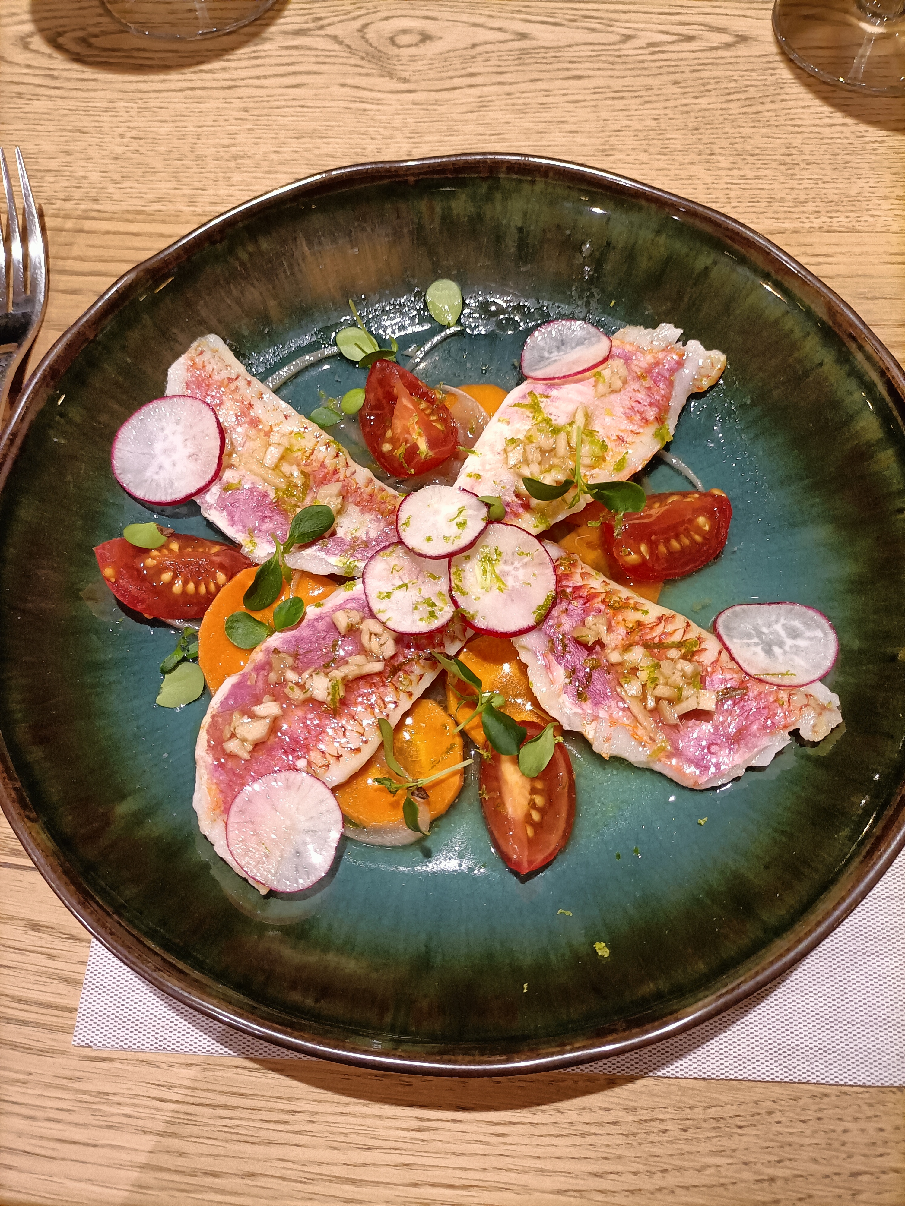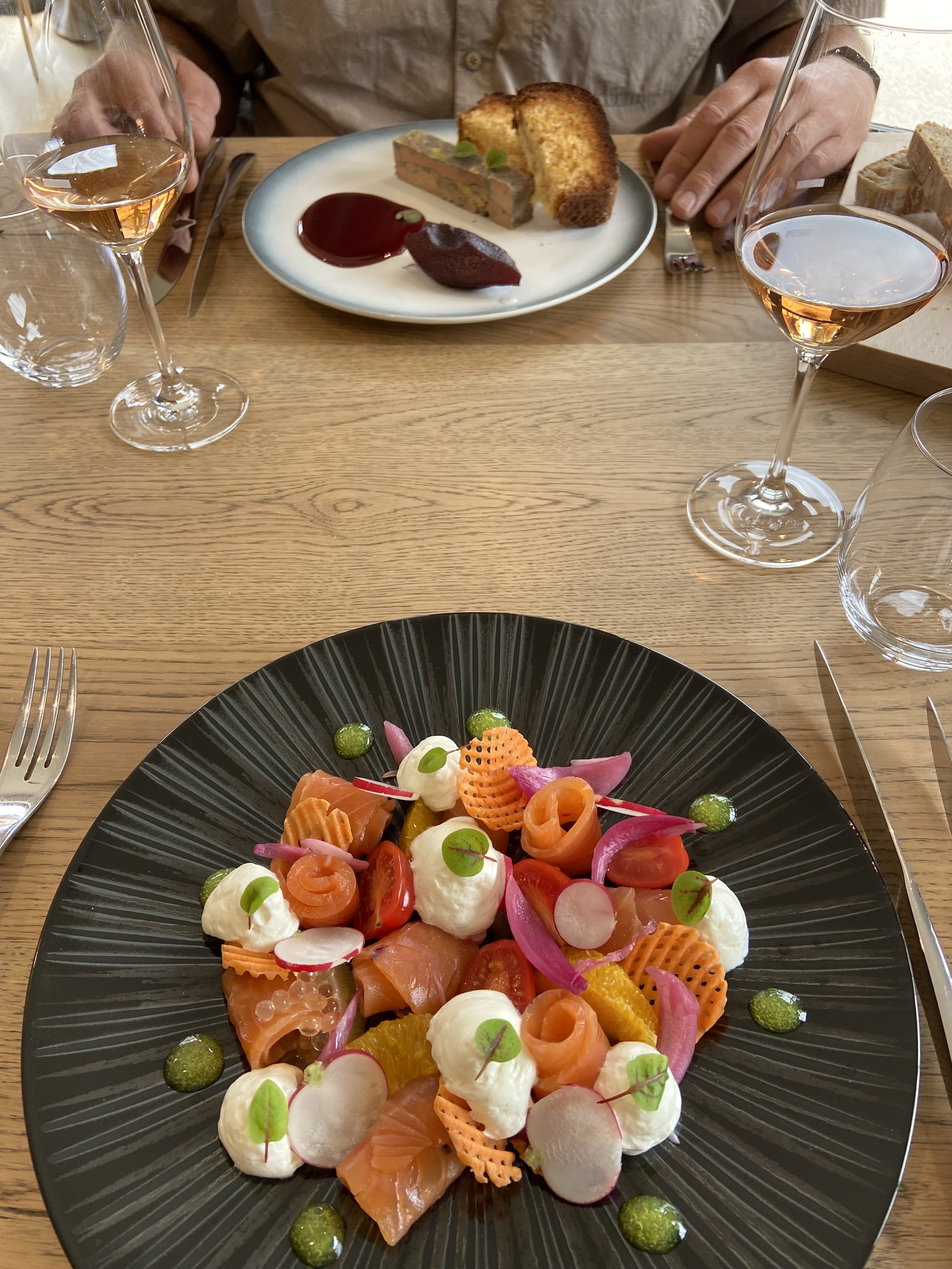 Un restaurant dans un petit coin de verdure … vous entrez dans une salle à la décoration minimaliste. Un service de qualité et de très bon conseil; des plats aux saveurs, textures et aux couleurs Inattendus ! Délicieux ! Gourmand ! Un plateau de fromage avec un large choix ! BRAVO