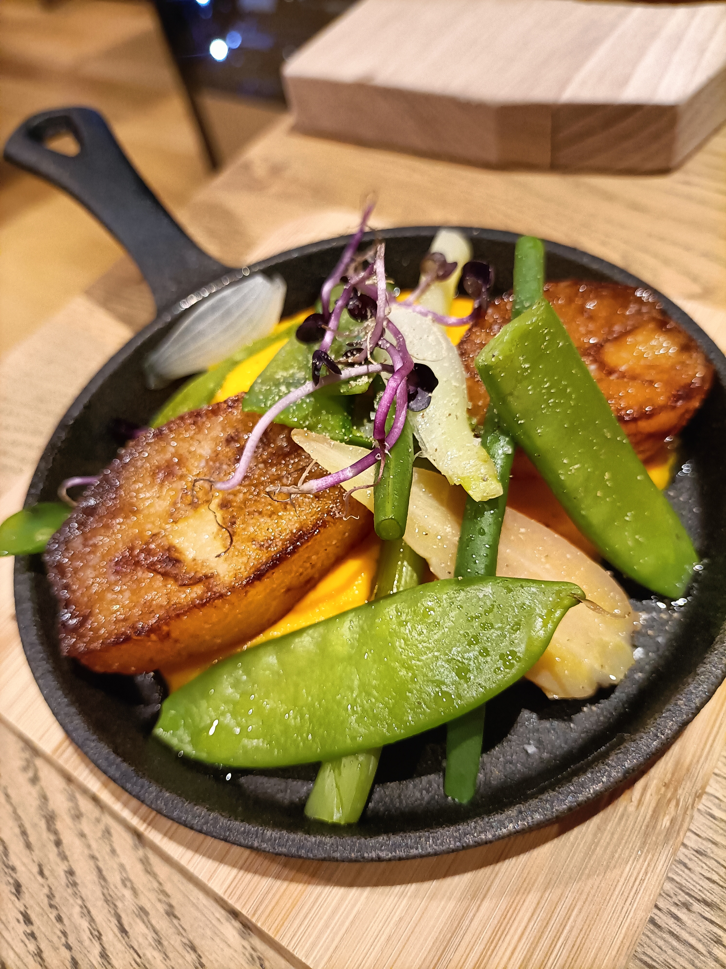 Merci pour votre commentaire, le chef fait sont maximum pour respecter et mettre en valeur les produits. Pour ce qui est d'un plat végétarien nous n'en proposons pas sur notre carte, car le chef adapte ses légume en fonction des récoltes de nos producteur qui varient en fonction du temps, pour autant lorsqu'on nous demande un plat végétarien nous nous adaptons en fonction de ce que nous avons. Au plaisir de vous revoir.