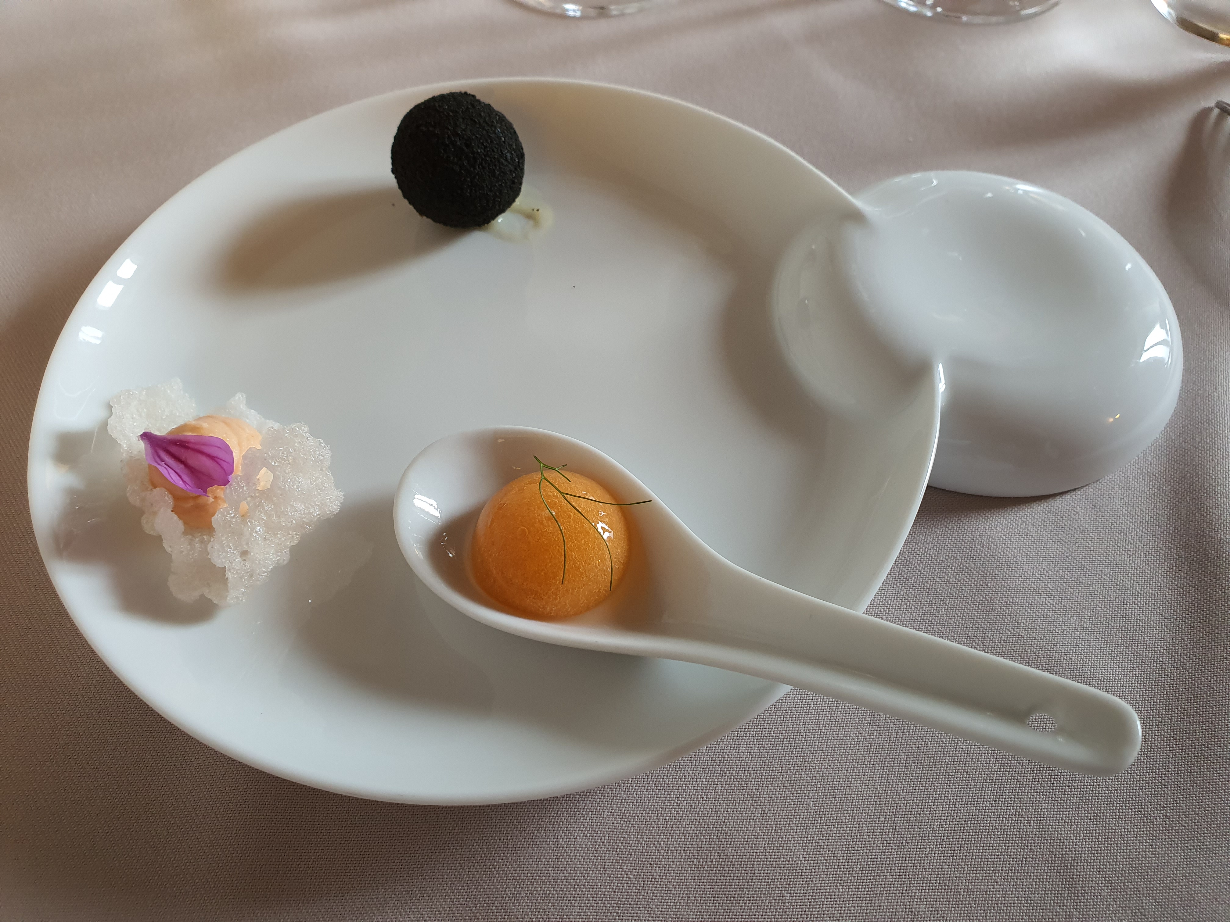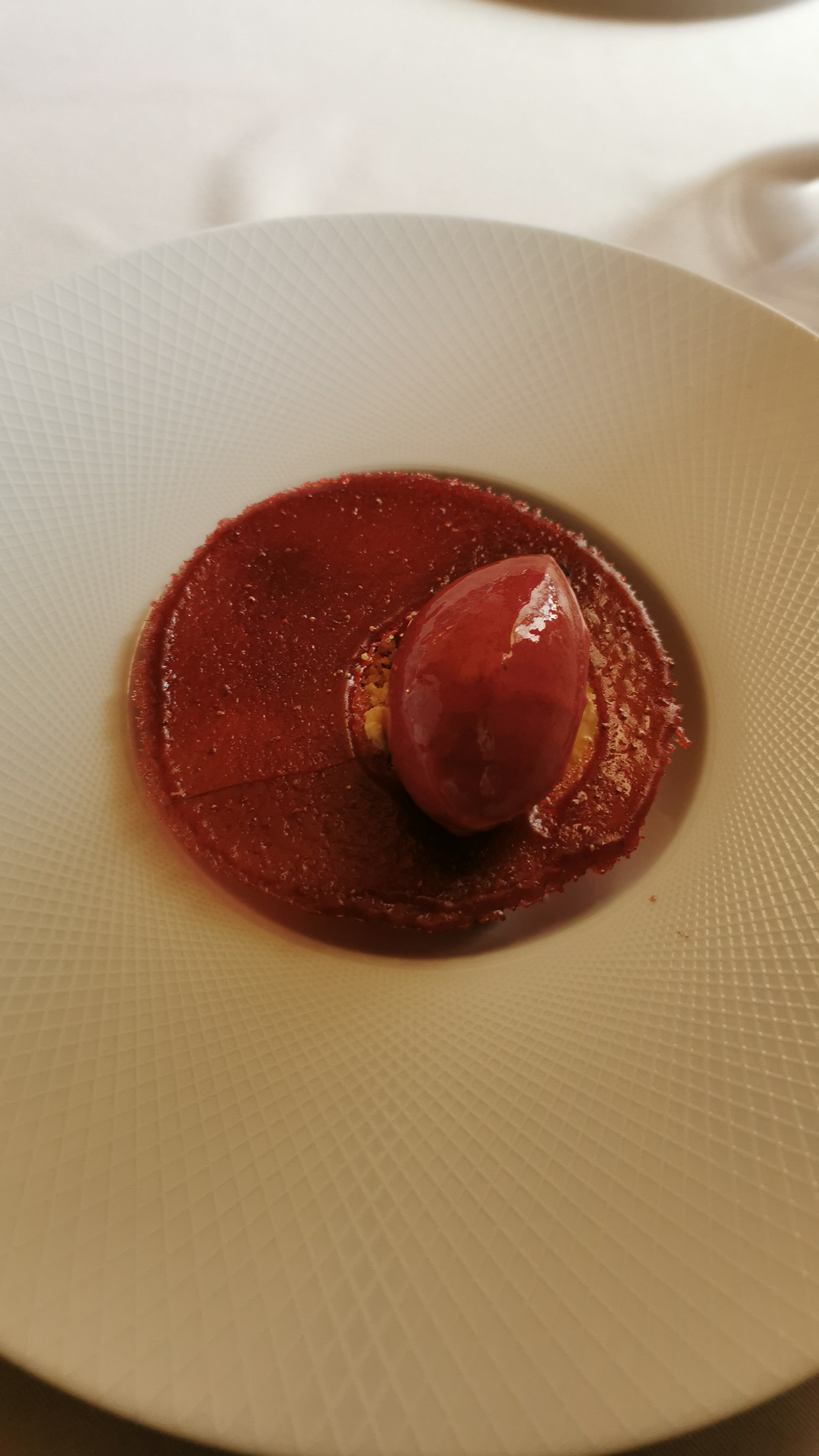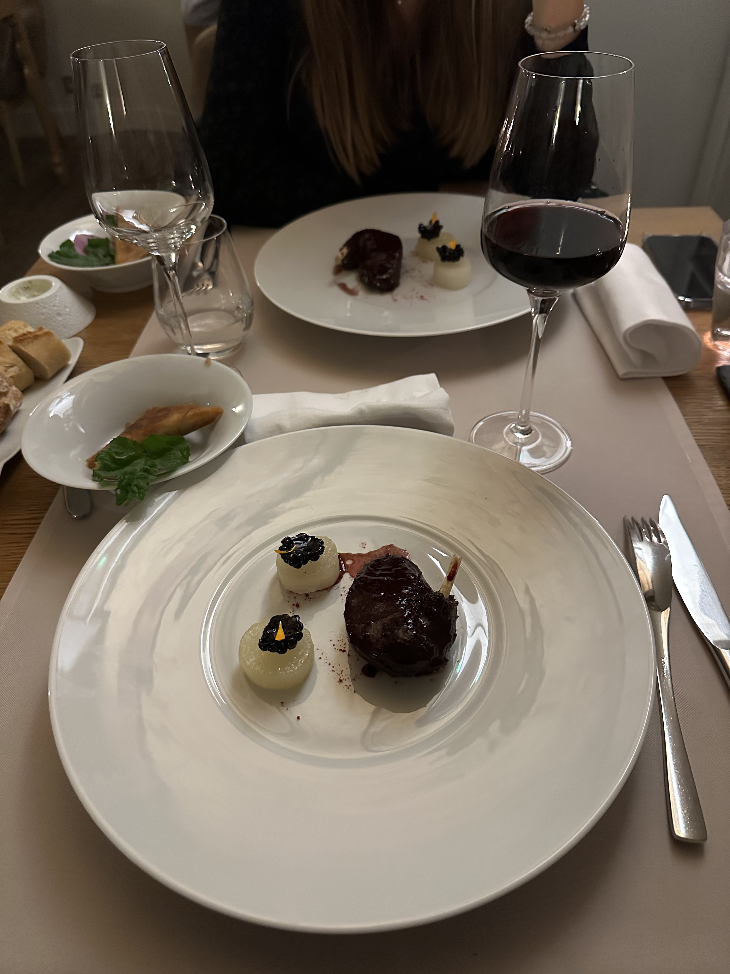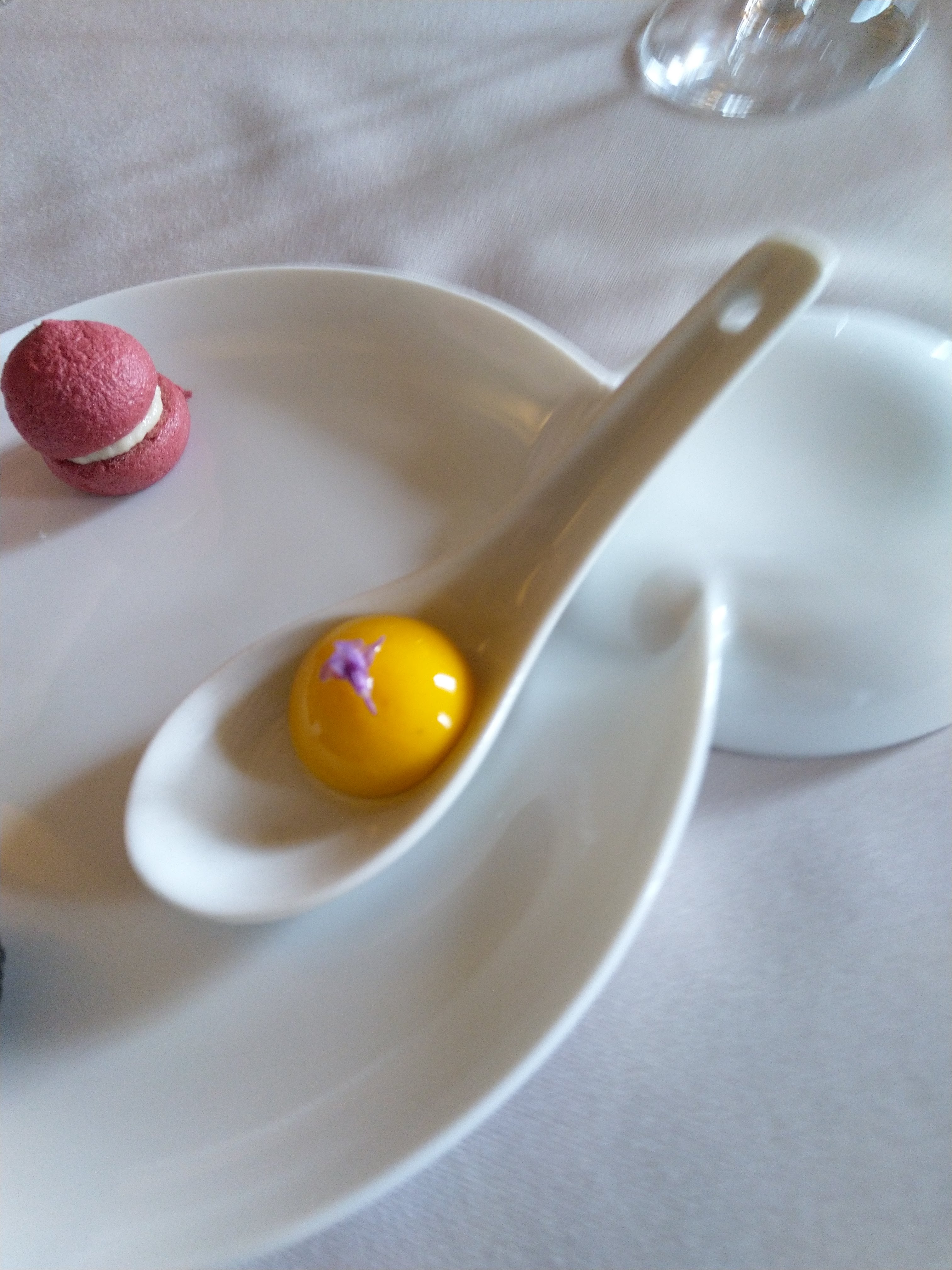 Une très belle expérience, de très bons/beaux plats. Nous avons choisi le menu rouge-pourpre avec 3 verres en accord avec les plats et ce fut exceptionnel. Le personnel est très accueillant et aux petits soins, nous sommes arrivés à 19h30 et nous avons quitté le restaurant à 22h45, sans avoir vu le temps passer. Félicitation au chef et à toute l'équipe.