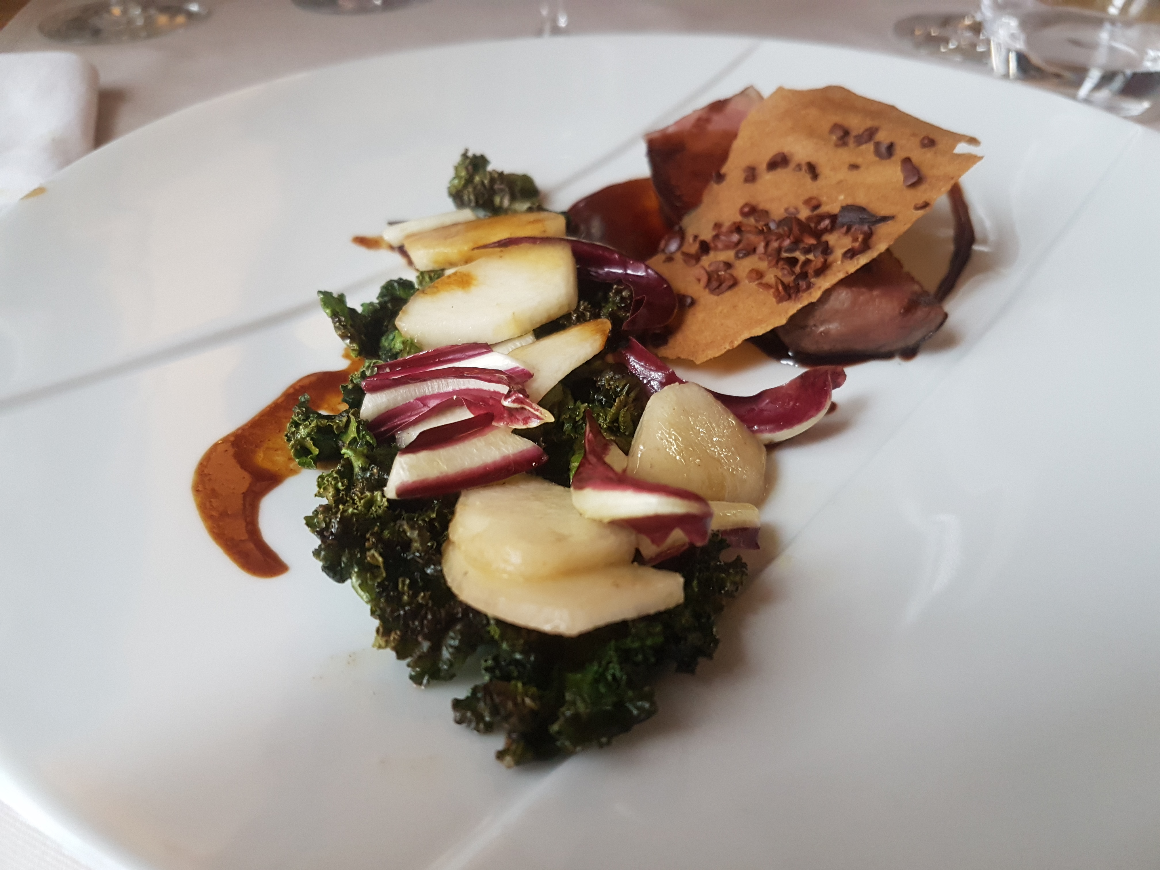 Un déjeuner à la hauteur des promesses, cromesquis d'escargot avec jus de persil très délicat, lieu jaune et choux fleur rôti cuit à la perfection et un dessert tout chocolat à inscrire dans les annales! Sans parler des amuse bouches et des mignardises excellents. C'est parfait à tous les niveaux, à recommander sans réserves.