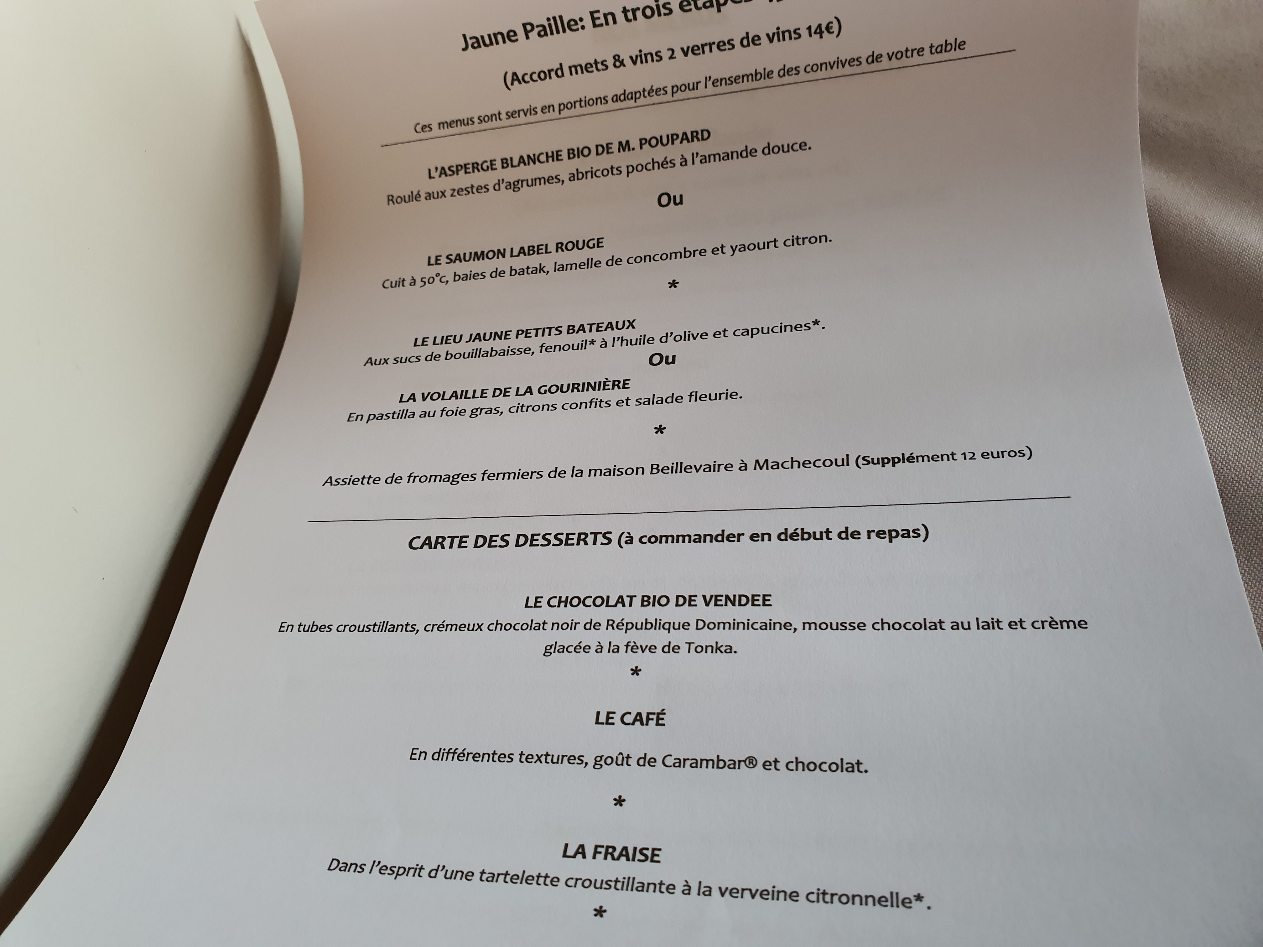 Merveilleux dîner tout truffe de Vendée. Personnel agréable et efficace. Gastronomie parfaite. Tout est d’une qualité, d’une sobriété et d’une élégance parfaite.