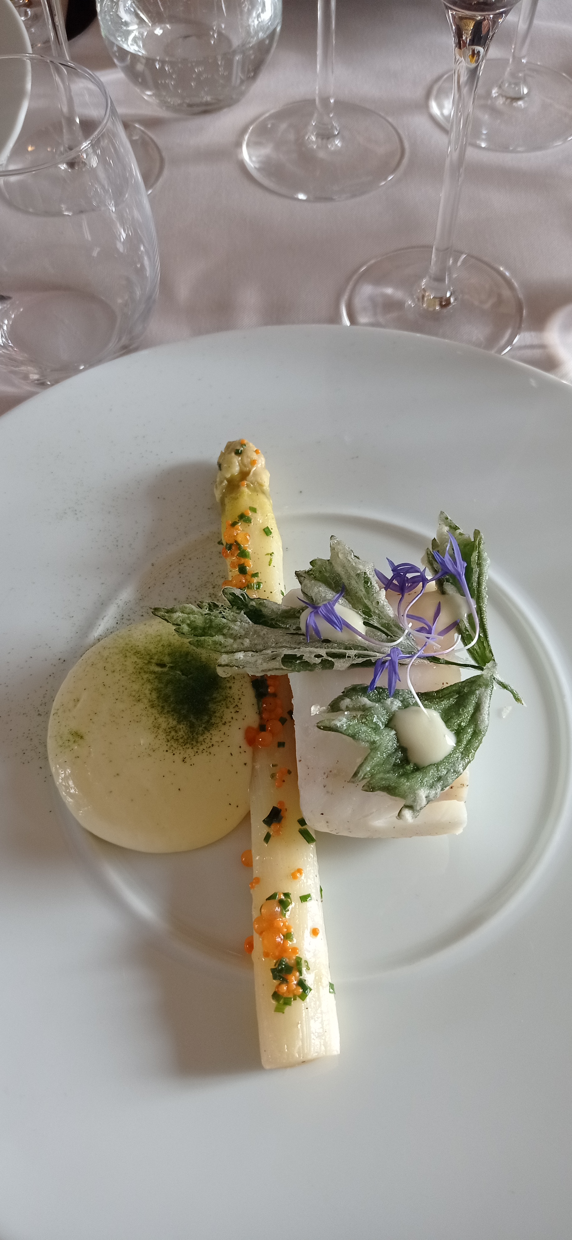 Nouvelle visite dans ce restaurant que j’ai déjà fréquenté quelques fois. L’espace est agréable et apaisant, élégant sans être guindé. L’accueil est souriant, le service le sera également avec professionnalisme. L’arrivée de chacun des plats est d’abord un régal pour les yeux, un tableau épuré que l’on hésite à détruire. Sa composition vous est présentée avec précision et l’on répond volontiers à vos questions. Le sommelier vous conseille un vin en accord avec votre plat en tenant compte de vos goûts. Si vous n’êtes pas féru d’œnologie, il prendra patiemment du temps pour vous expliquer les particularités des crus choisis. Les cuissons, souvent à basse température, sont maîtrisées. Le chef propose des produits frais et de saison subtilement épicés avec un crescendo au long du repas. Bref, un moment très agréable qui incite à revenir.