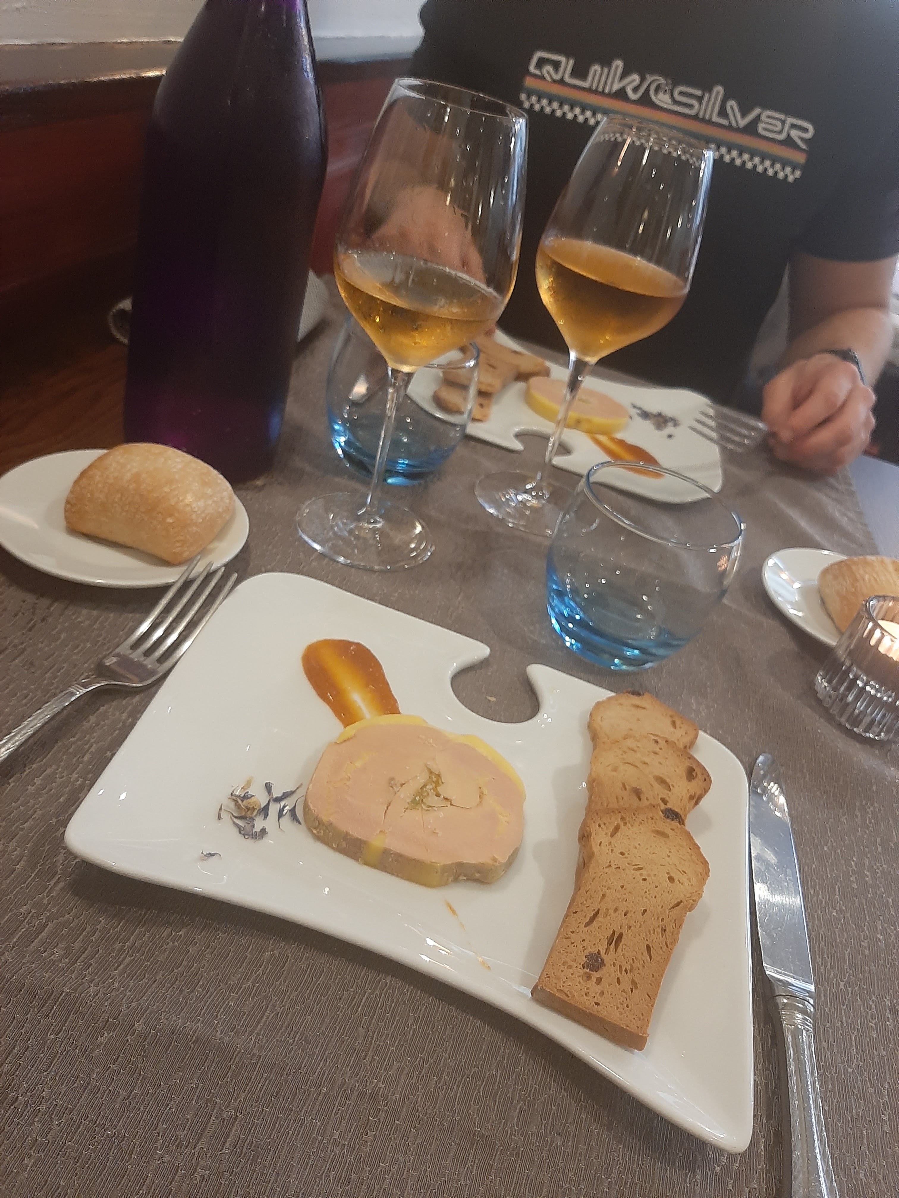 Comme lu plus bas, « il ne suffit vraiment pas de mettre du fois gras à sa carte pour se prétendre restaurant gastronomique ».. Bien que ce fois gras soit délicieux, ce restaurant ne fait preuve d’aucune cohérence.. Arrivée au restaurant avec une réservation pour 3, on nous installe sur une table de 4 mais on ne débarrasse pas le 4e couvert inutile.. La responsable de salle vient prendre notre commande avec un sec et unique: « vous voulez quoi? » __ alors là pour du gastronomique on tombe bien bas.. il a fallut demander notre apéritif nous même sans quoi on en était privé.. La salle n’a pas une décoration cohérente avec une prétention non atteintes.. par exemple pourquoi servir le pain sur des assiettes à café Richard? Honnêtement je suis pas venu jouer à la dînette donc rien ne sert de prétendre ce que l’on est pas. Vous voulez un deuxième exemple? Il a fallut réclamer notre bouteille de saint Joseph après que nos plat aient été servis, car la responsable de salle qui était en charge de notre table, n’avait définitivement pas envie de nous servir il faut croire.. Entrecôte la plus nerveuse de ma vie, mais on pourrait dire que cela arrive.. pourtant les accompagnements était tout aussi décevant.. Une étoile pour le service grâce à cette charmante jeune serveuse qui fut le plus sympathique possible et accordante lorsque j’ai demander à prendre mon dessert à emporter car plus d’appétit.. Enfin pour finir devrais je parler des toilettes? On dis souvent que les toilettes sont le reflet direct d’un restaurant, pour le coup je demanderai au responsable de ce restaurant de bien contempler leur toilette pour comprendre les problèmes de leur restaurant.