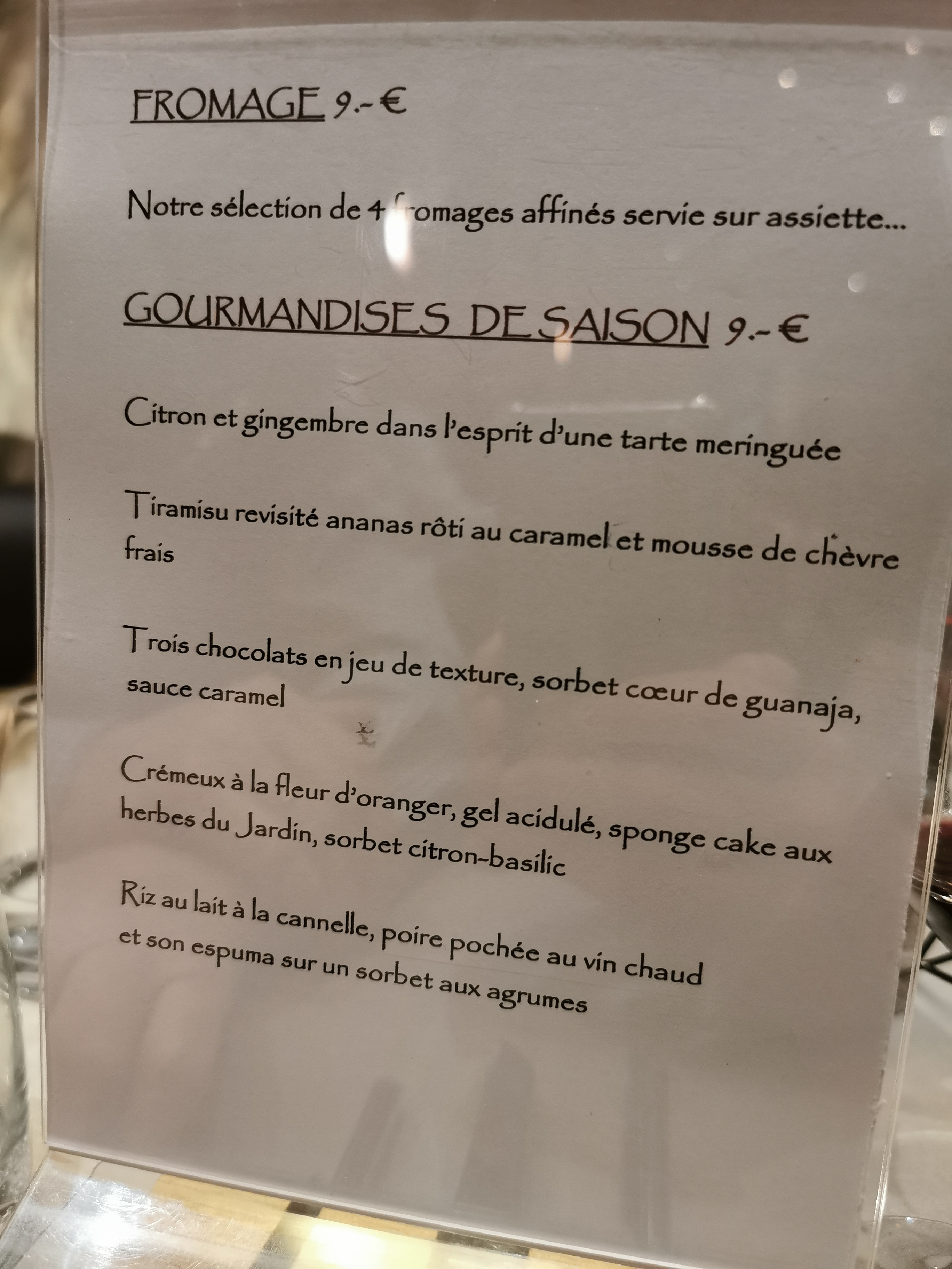 Carte variée et menu de saison, très belle présentation et des saveurs inoubliables. Une équipe courtoise et fort sympathique. Nous nous réjouissons de revenir bientôt.