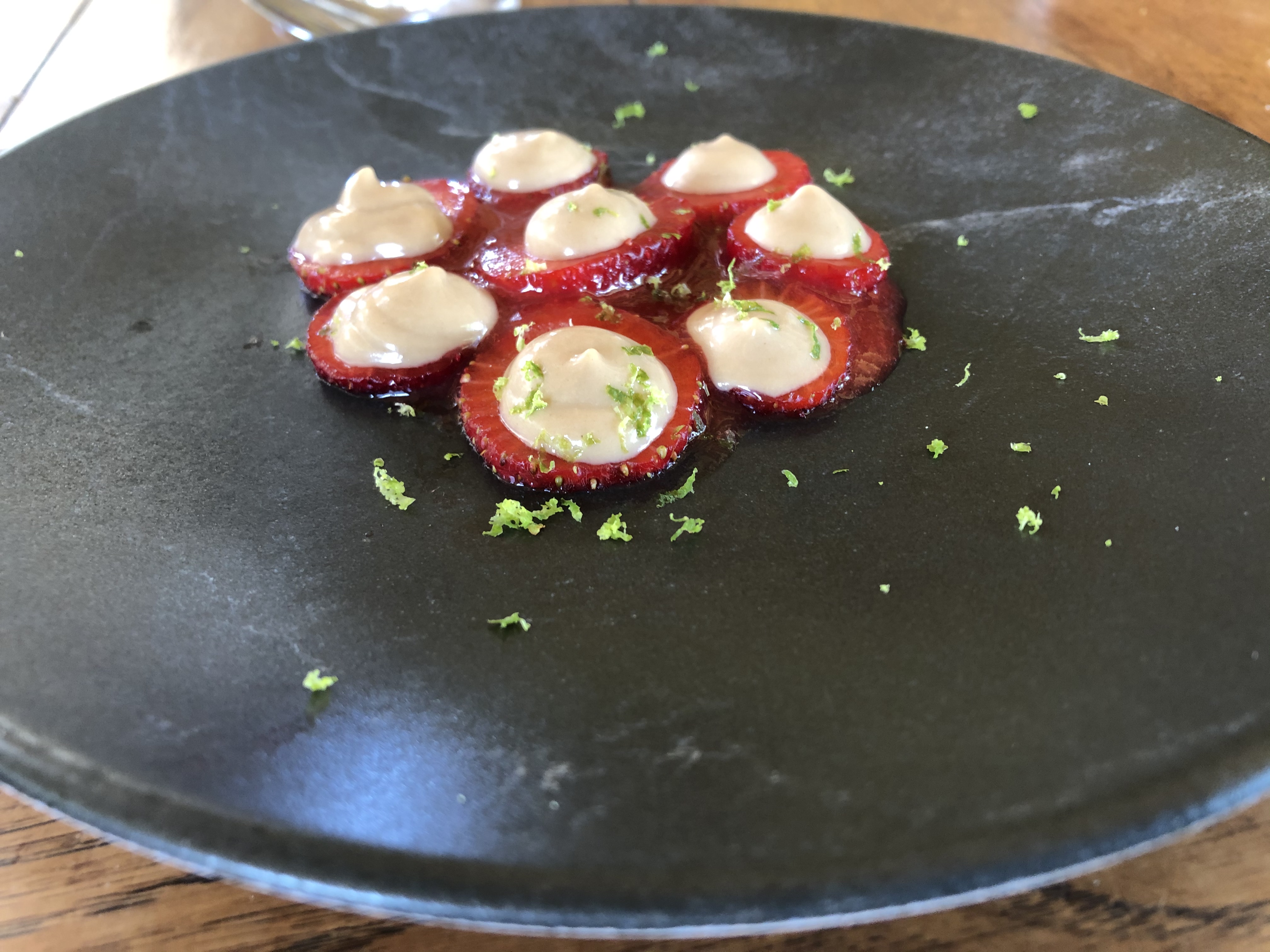 Différent et inattendu, tant dans la cuisine que dans la tête du personnage qui fait naître un plat au travers de bon produits locaux, solide et liquide bien sûr ! Ce n'est pas une démarche gustative mais une expérience culinaire, un voyage... Un grand sens du partage pour ce Chef. Bravo