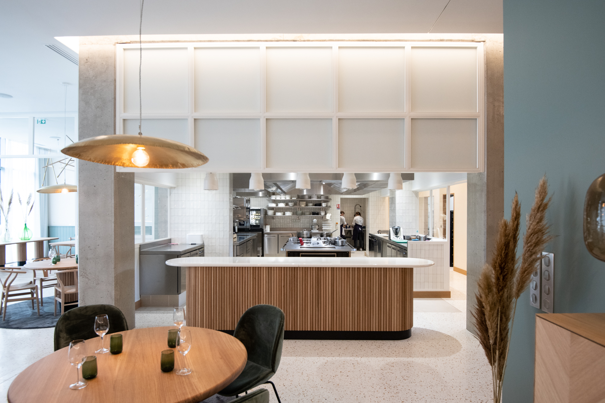Passée la porte vous entrez dans un monde voluptueux dédié à la cuisine. Tout se prépare sous vos yeux. De la grande cuisine française moderne et raffinée : comme on aime !