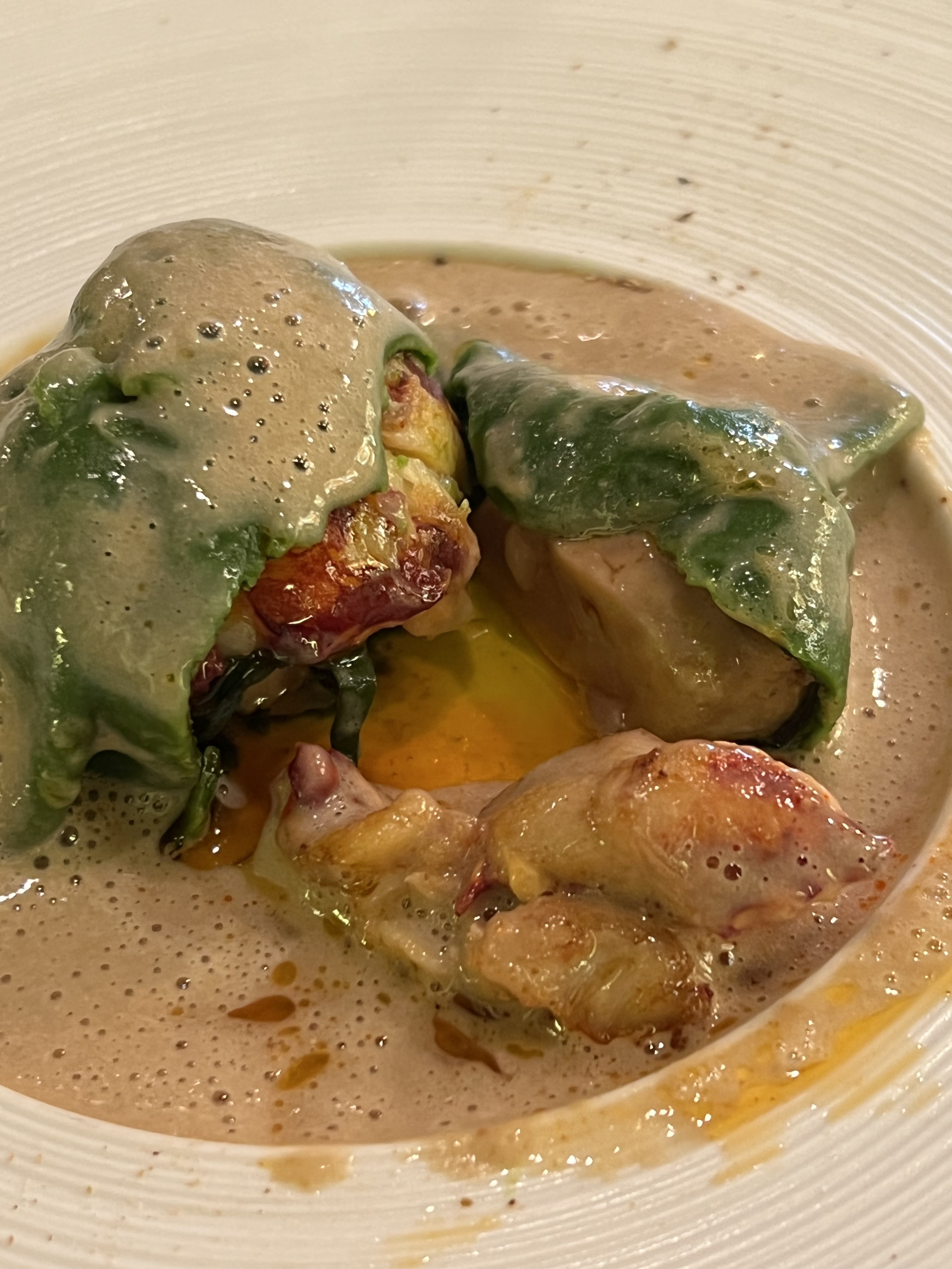 Très bons vins. Desserts sublimes. Très bonne expérience dans l'ensemble. Service et accueil parfaits. Juste un petit bémol dans la raviole de homard et foie gras aux cèpes avec un foie gras mal dénervé.