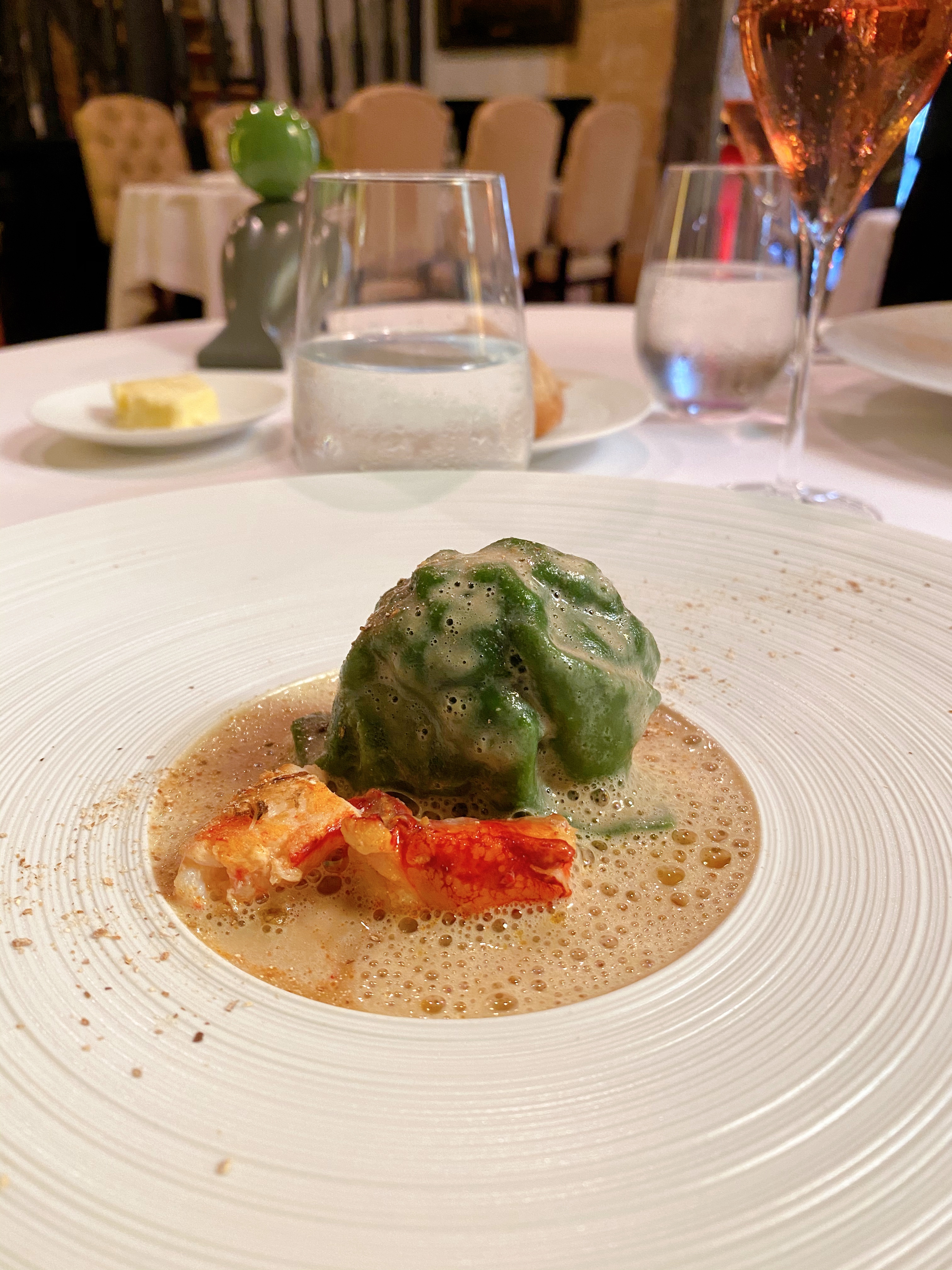 Toute notre expérience a été excellente! Nous avions 20 minutes de retard pour notre réservation à cause d'un accident de la route (pas nous), mais le personnel était heureux de nous accueillir. Tout le personnel était très sympathique et accueillant, même le maître d'hôtel qui me taquinait lorsque j'essayais de commander un prosecco : Madame ! C'est la France, nous avons du champagne ici ! Mon ami et moi avons préparé le menu dégustation de 6 assiettes et avons tout apprécié. Personnellement, je pensais que la star du repas était la quenelle de bar - je ne l'aurais jamais choisie moi-même, mais je suis tellement contente qu'elle soit incluse car elle était délicieuse ! (Comme un poisson gefilte riche et super moelleux) Alors que d'autres restaurants étoilés Michelin sont plus modernes et artistiques, j'ai vraiment apprécié l'ambiance classique de cet endroit et l'histoire du décor. C'était raffiné mais détendu. 10/10 je recommanderais 👍