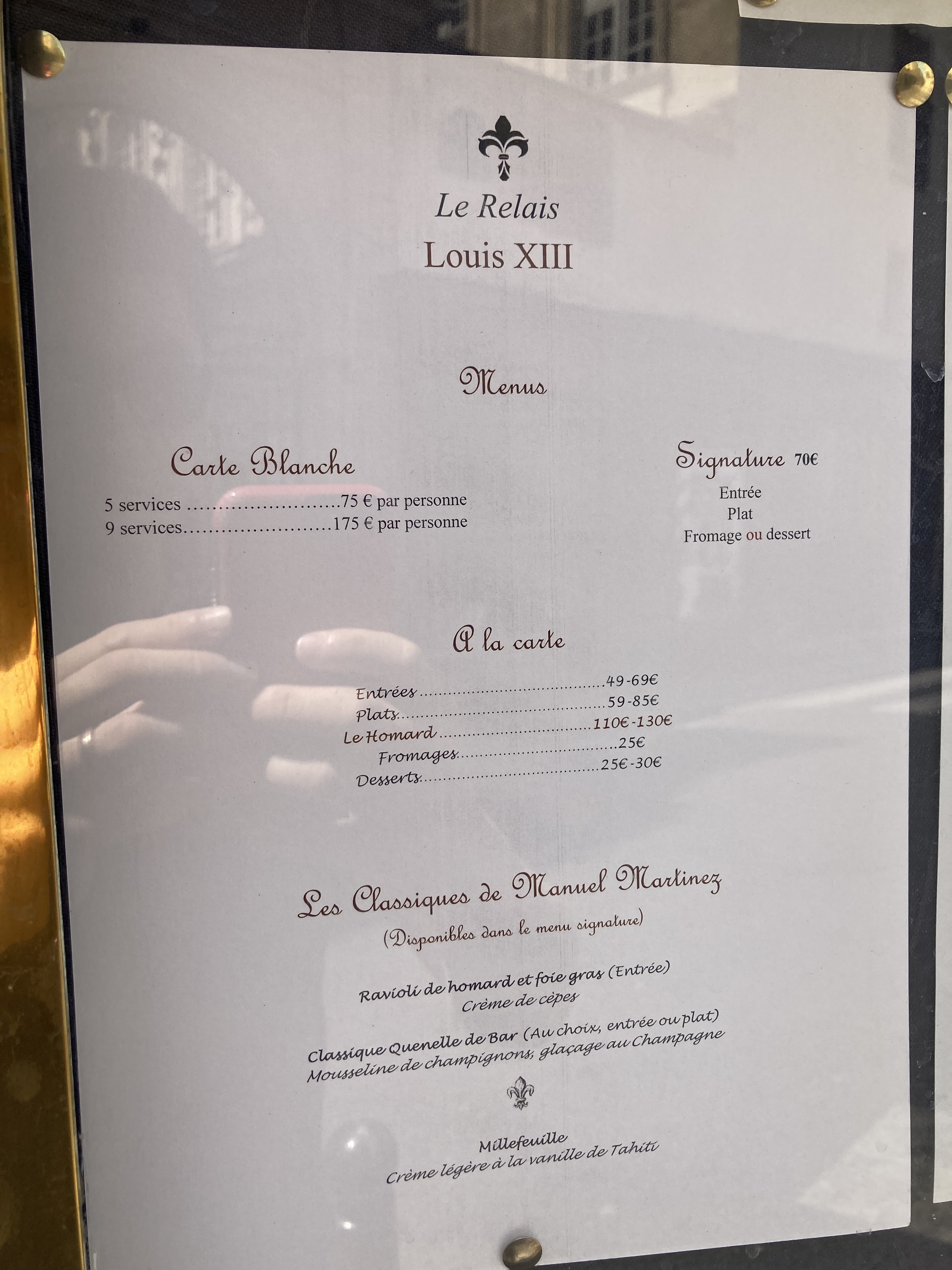 Déjeuner remarquable en tous points ! Mets absolument délicieux, service attentionné et irréprochable, sommelier exceptionnel, accueil charmant. Aucune fausse note. « Le Relais Louis XIII» est vraiment un haut lieu de la gastronomie française et où l'on se sent bien ! A conseiller vivement !