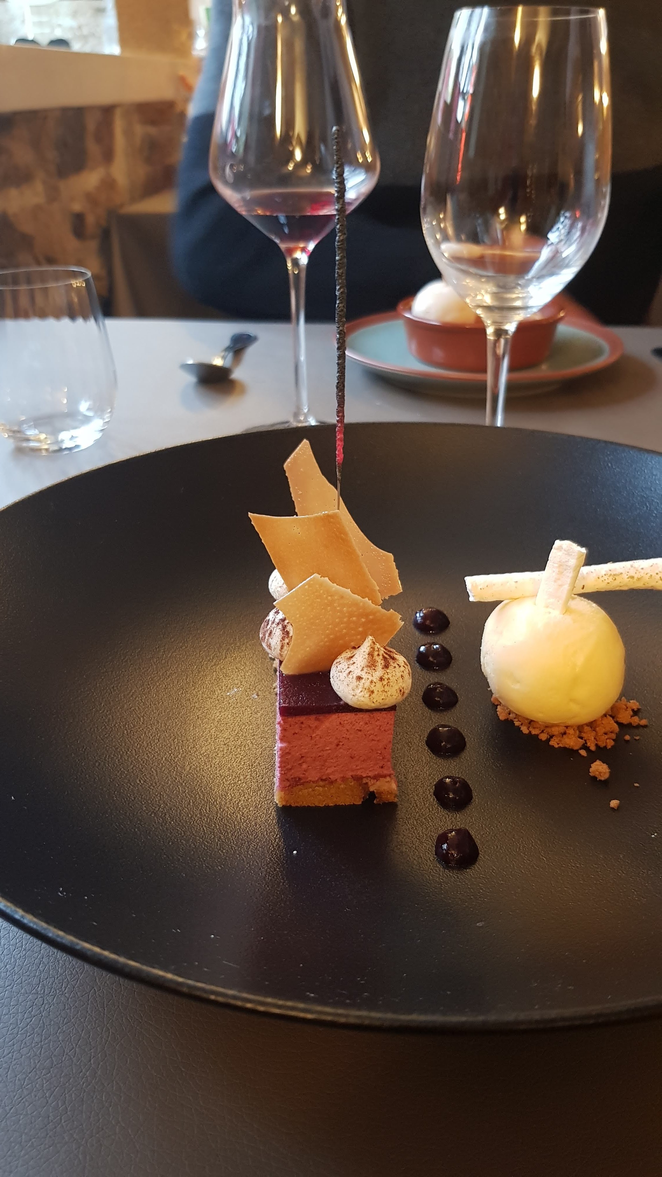 Pour un moment hors du temps, une nouvelle carte pour l'été absolument délicieuse. La coupe cassis marc de Bourgogne est vraiment succulente, une explosion de saveurs pour terminer le repas en feu d'artifice... Bravo à toute l'équipe
