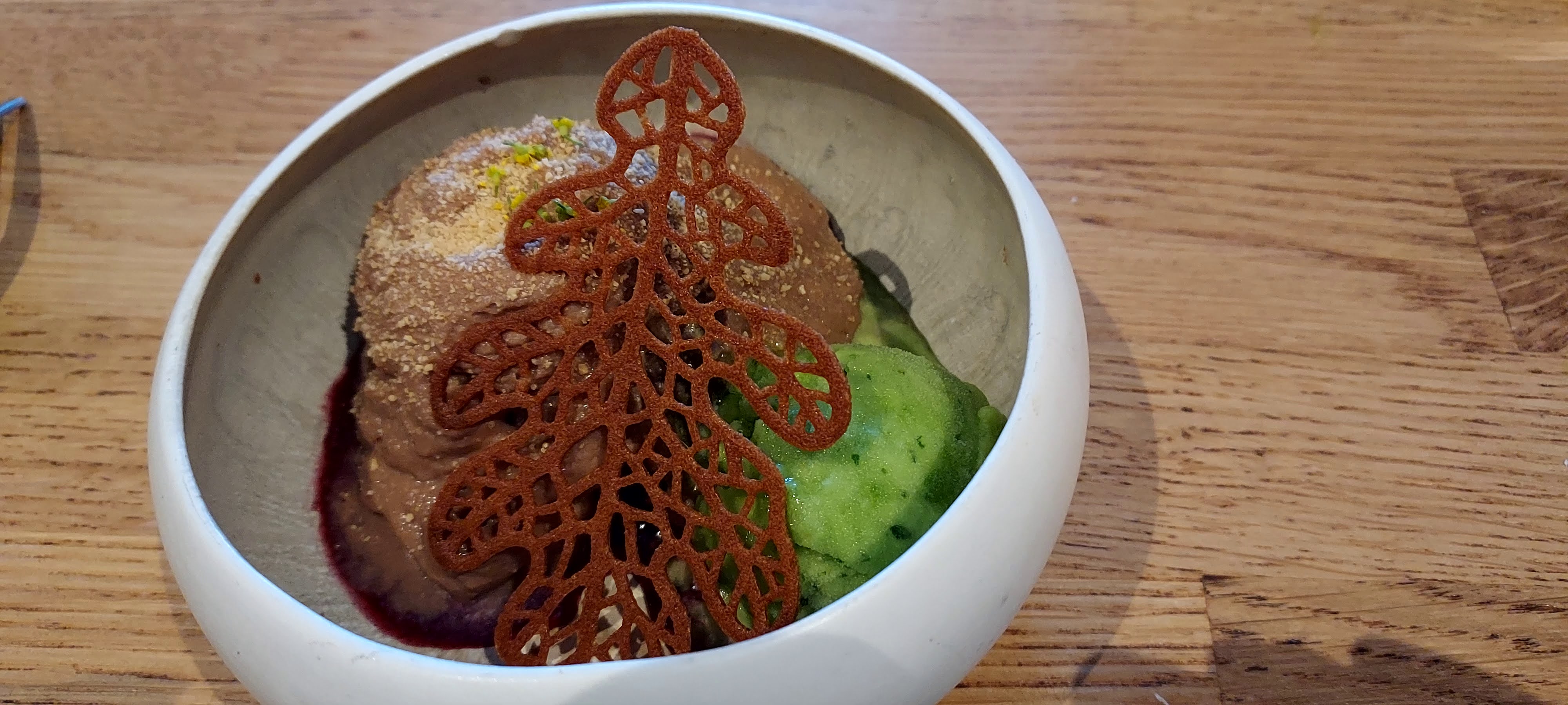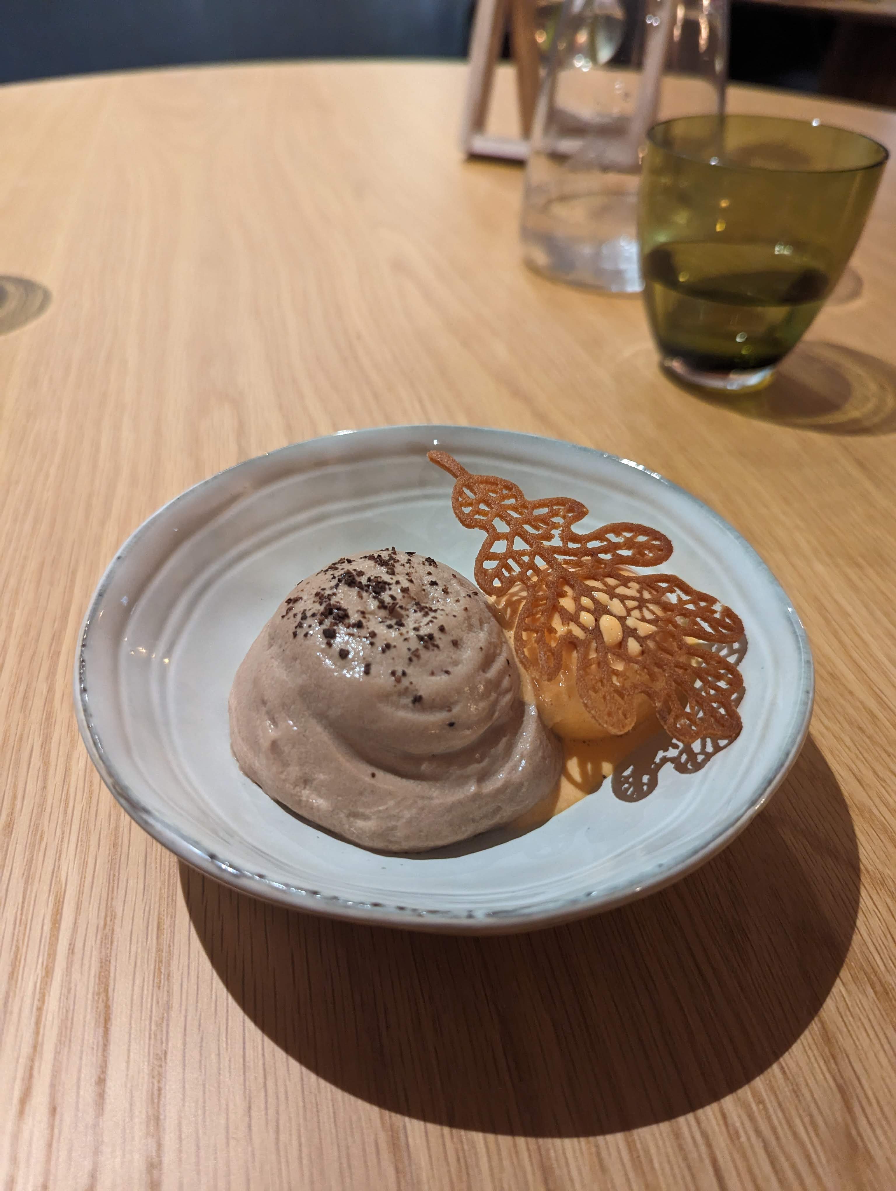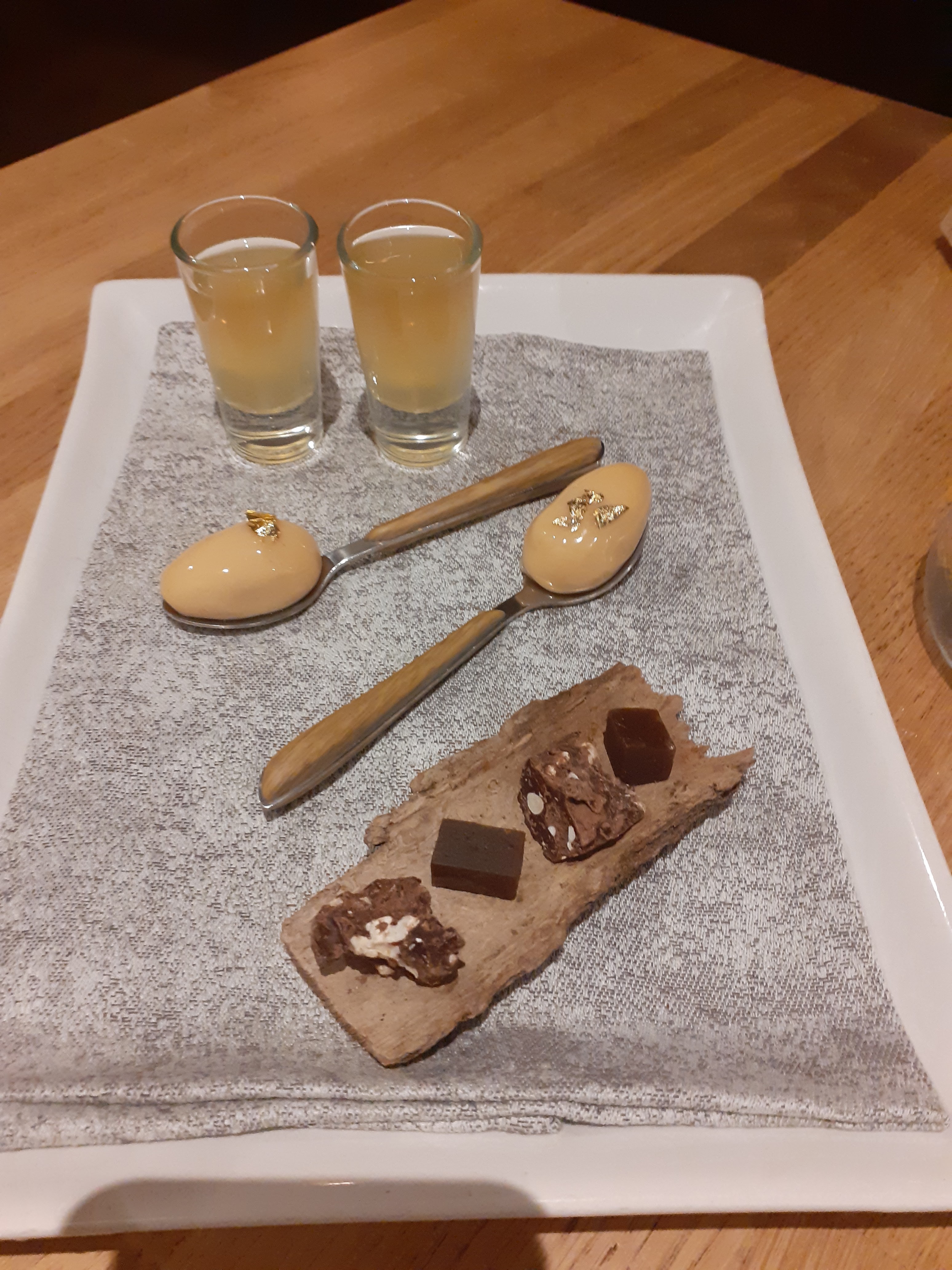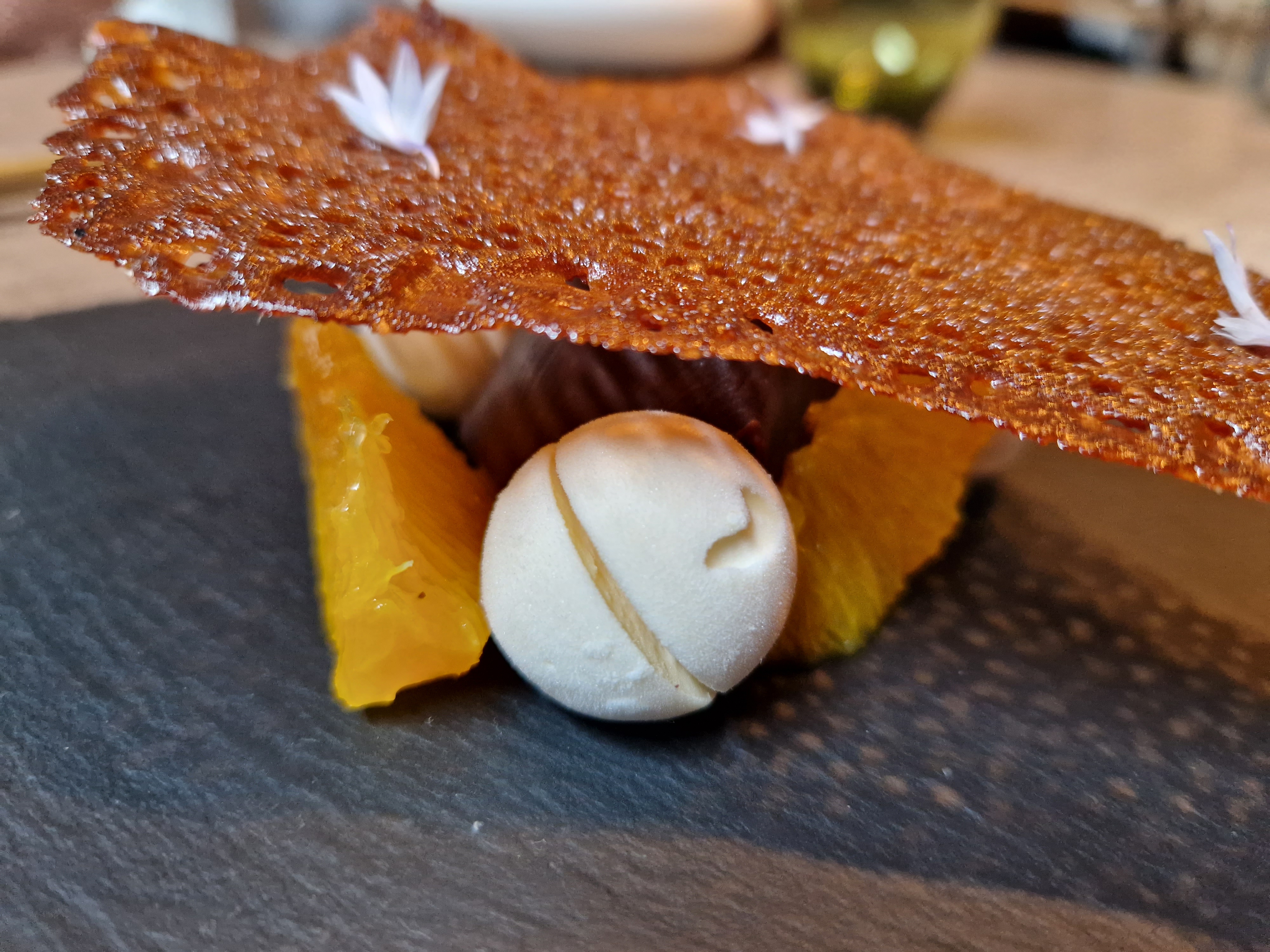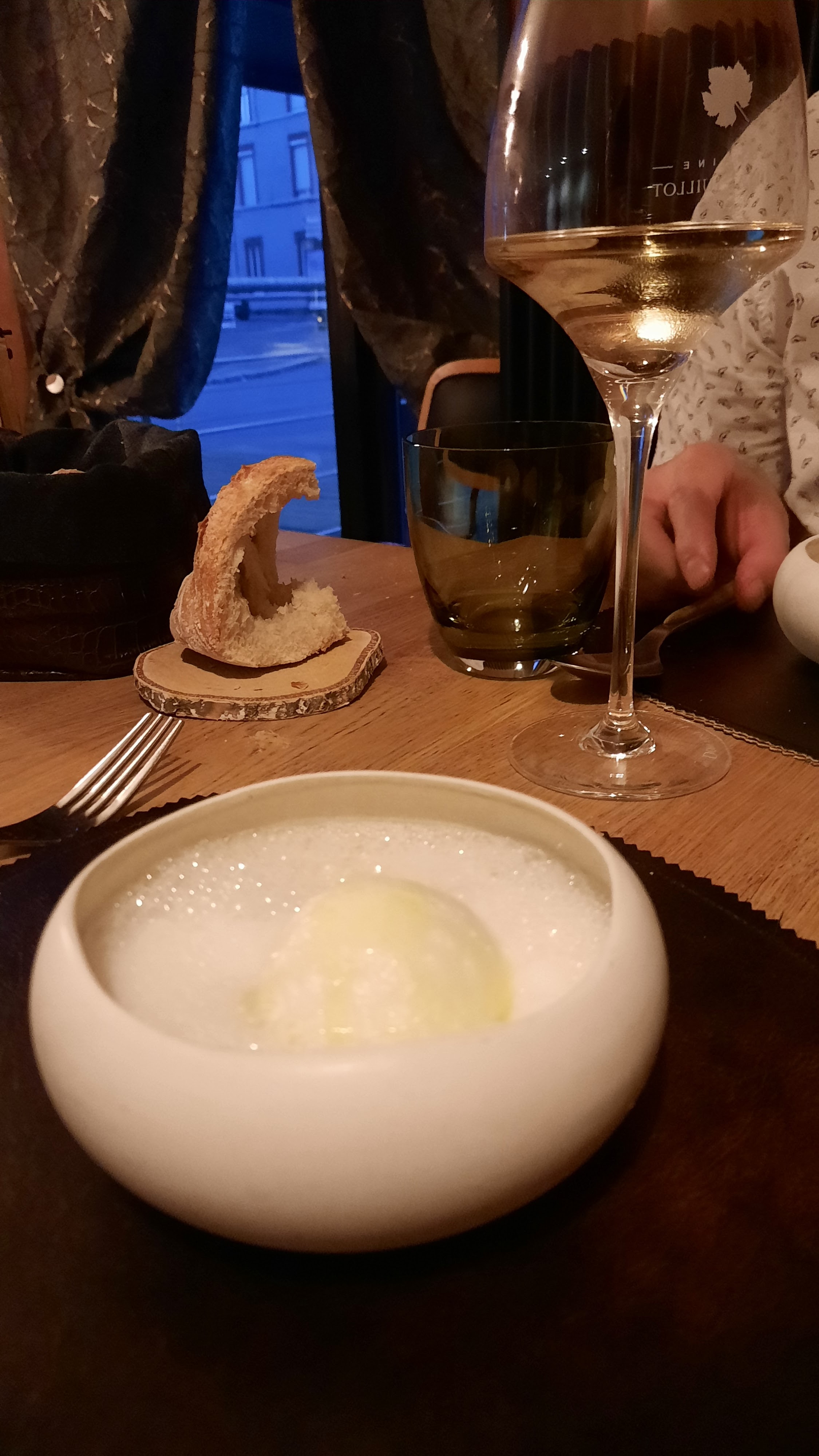 Cuisine raffinée, dans un cadre à la fois classe et chaleureux, et une atmosphère feutrée. Coup de coeur pour la mise en bouche oeuf mollet à l'époisse, la petite glace au poivre de sichuan et la ganache au chocolat avec sa tuile à l'orange. Et la présentation est tout aussi raffinée. C'est une belle adresse. Ce qui aurait été parlant c'est de montrer nos assiettes vides !