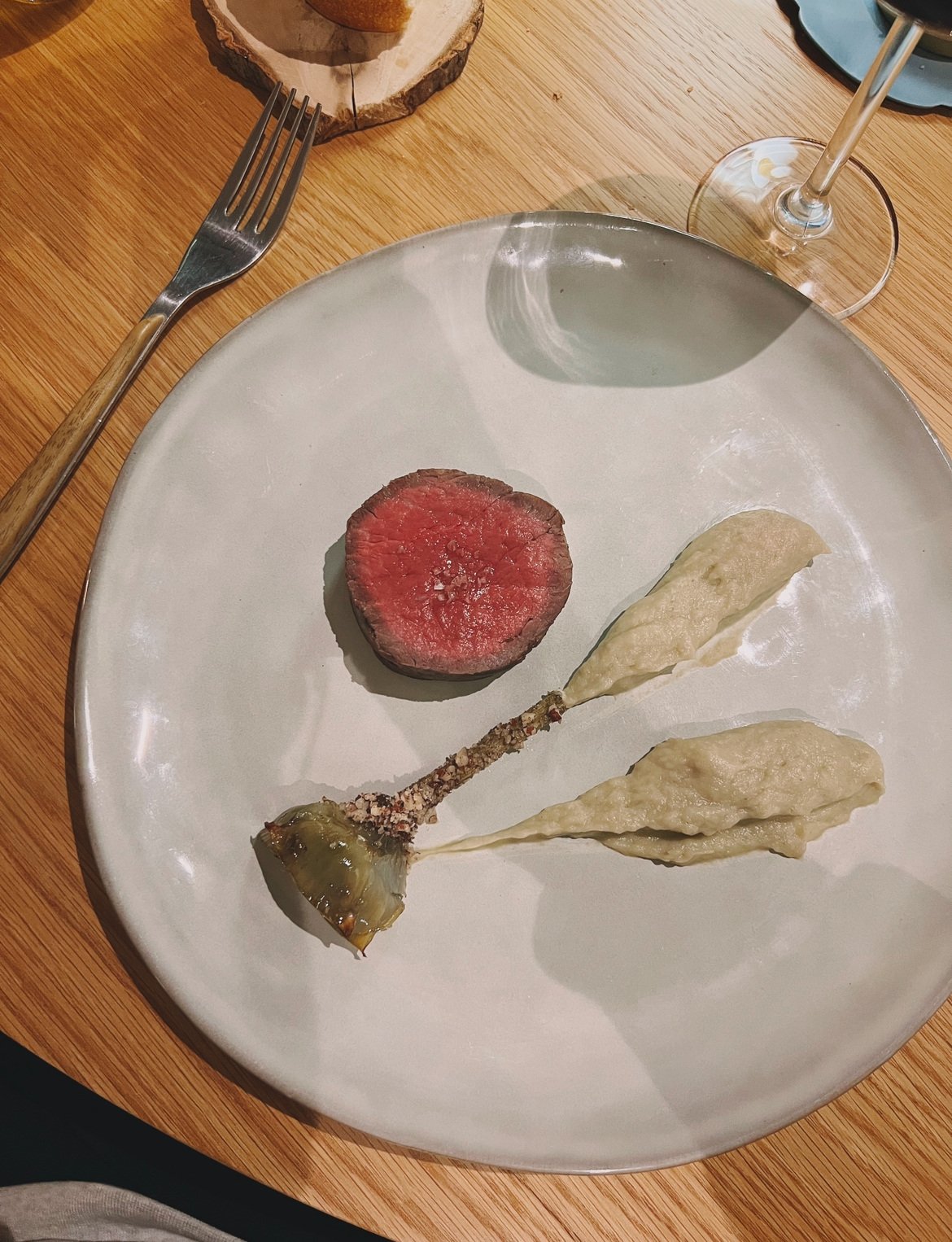Nous avons récemment passé une soirée mémorable au restaurant en compagnie d'un autre couple d'amis (~3h). Le temps a filé sans que nous nous en rendions compte, tant l'expérience était plaisante. Les plats étaient non seulement délicieux, mais aussi esthétiquement présentés. La viande, d'une qualité exceptionnelle, mérite une mention spéciale. Les amuse-bouches, tout comme le reste du repas, étaient de grande qualité. Le service était tout aussi plaisant. Le serveur prenait le temps de décrire chaque plat. L'ambiance du restaurant était rehaussée par un design et un décor intérieur soigneusement pensés. Malgré le niveau élevé de la cuisine et du service, les prix restaient abordables. Ce qui nous a le plus surpris, c'est que tout cela était géré par seulement deux personnes : l'une en salle, l'autre en cuisine. À bientôt.