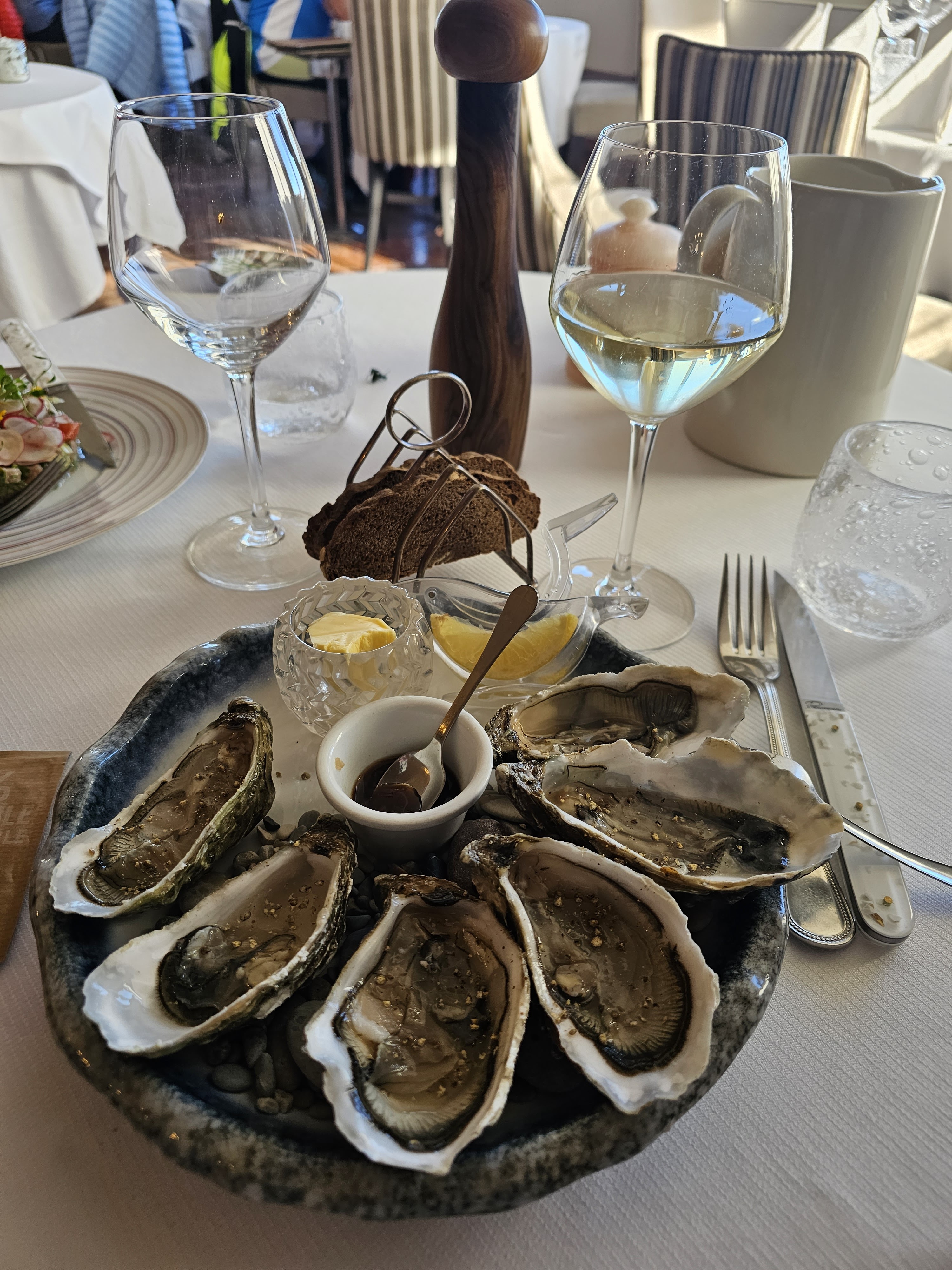 Très déçue. J'arrive au restaurant, personne ne m'accueille. Je rejoins ma table : personne ne vient nous proposer de prendre un apéro. Nous avons commandé le menu surprise qui est beaucoup trop cher pour la qualité servie. De plus, nous avons attendu presque une heure entre chaque plat alors qu'il n'y avait pas beacoup de monde. La décoration des tables n'est pas du tout élégante (des coquillages peints à la main). Les serveurs ne présentent pas les plats ce qui génant quand on prend un menu surprise. Un des serveurs était beaucoup trop familier et nous a presque forcé à aller voir la boutique en partant. Enfin, il nous déconseille de manger dehors si on veut revenir la prochaine fois (ce qu'on ne fera pas) car selon lui il fait trop froid et cela fait beaucoup marcher les serveurs... La vue est belle mais je ne reviendrai pas.
