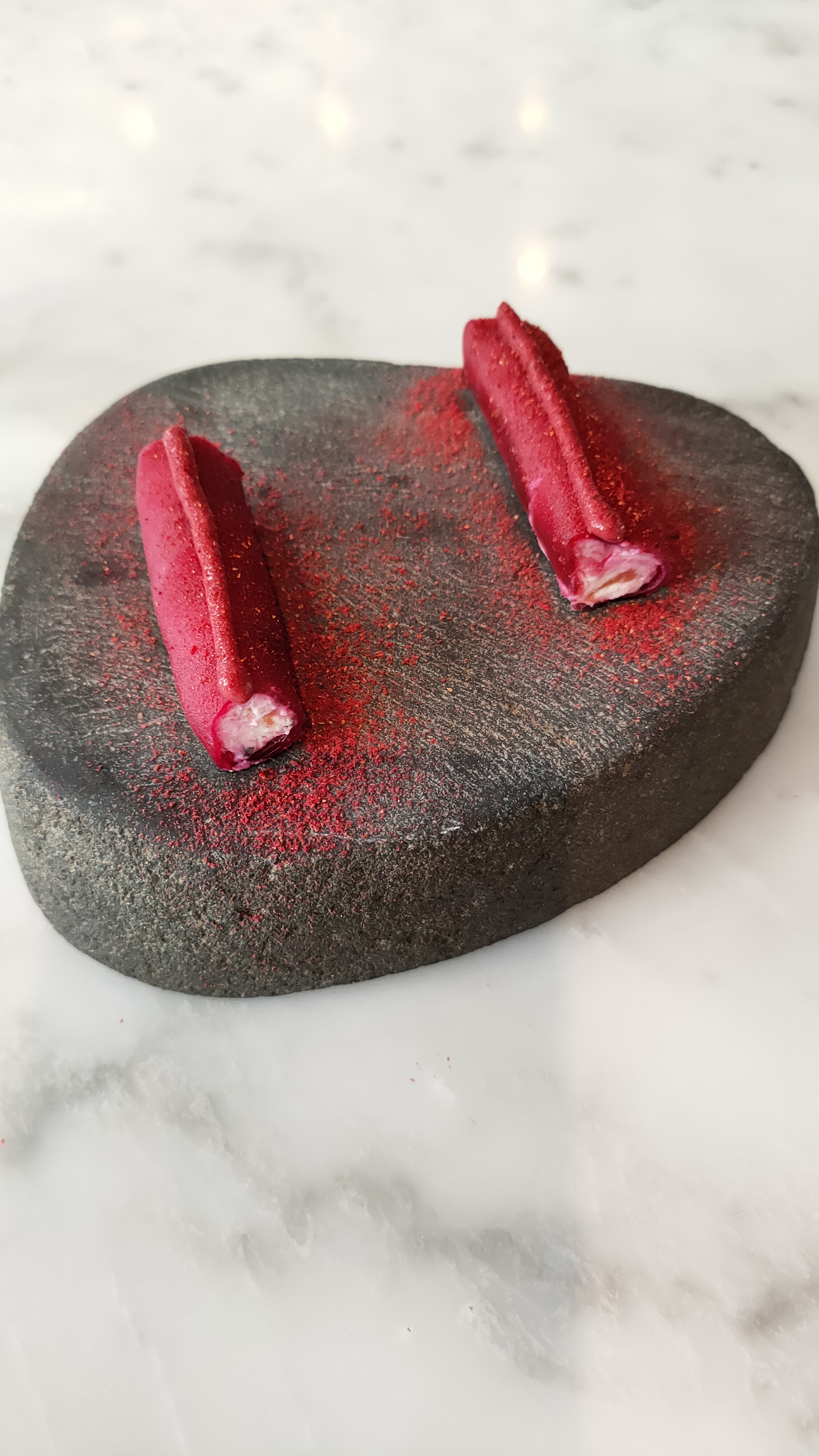 Une superbe expérience au comptoir : on suit en direct l’envoi des plats et la complicité des équipes. Dans l’assiette, c’est complexe, explosions d’émotions, entre l’acidulé et la gourmandise aucunes saveurs ne se ressemblent ! Brave au chef et à l’équipe